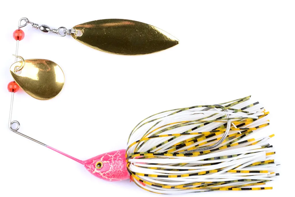 Señuelo giratorio de 24g para pesca, cebo de alambre elástico, plantillas de Metal, falda de silicona, gancho de acero inoxidable, cuchara, Wobbler para lubina, Lucio, invierno