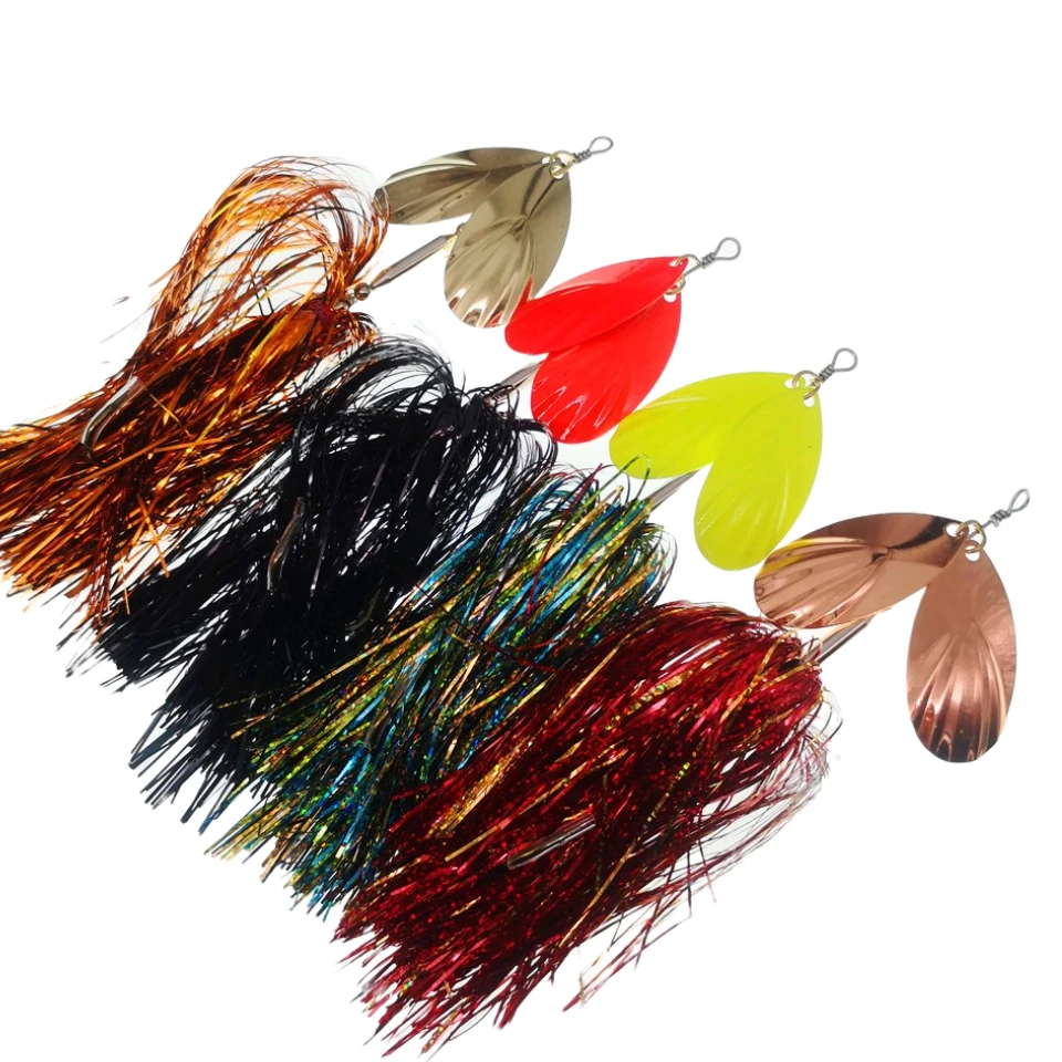 Señuelo giratorio de 4 piezas de 22cm/45g, señuelo de pesca de cuchara de Metal, anzuelo triple, señuelo de lubina, cebo duro, aparejos de plantilla