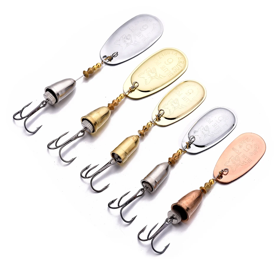 Señuelo giratorio de Metal para pesca, 1 piezas, 4g, 6g, 8g, 10g, 16g, 19g, cebo de cuchara Artificial dura de latón, anzuelo triple, aparejos de pesca para Lucio