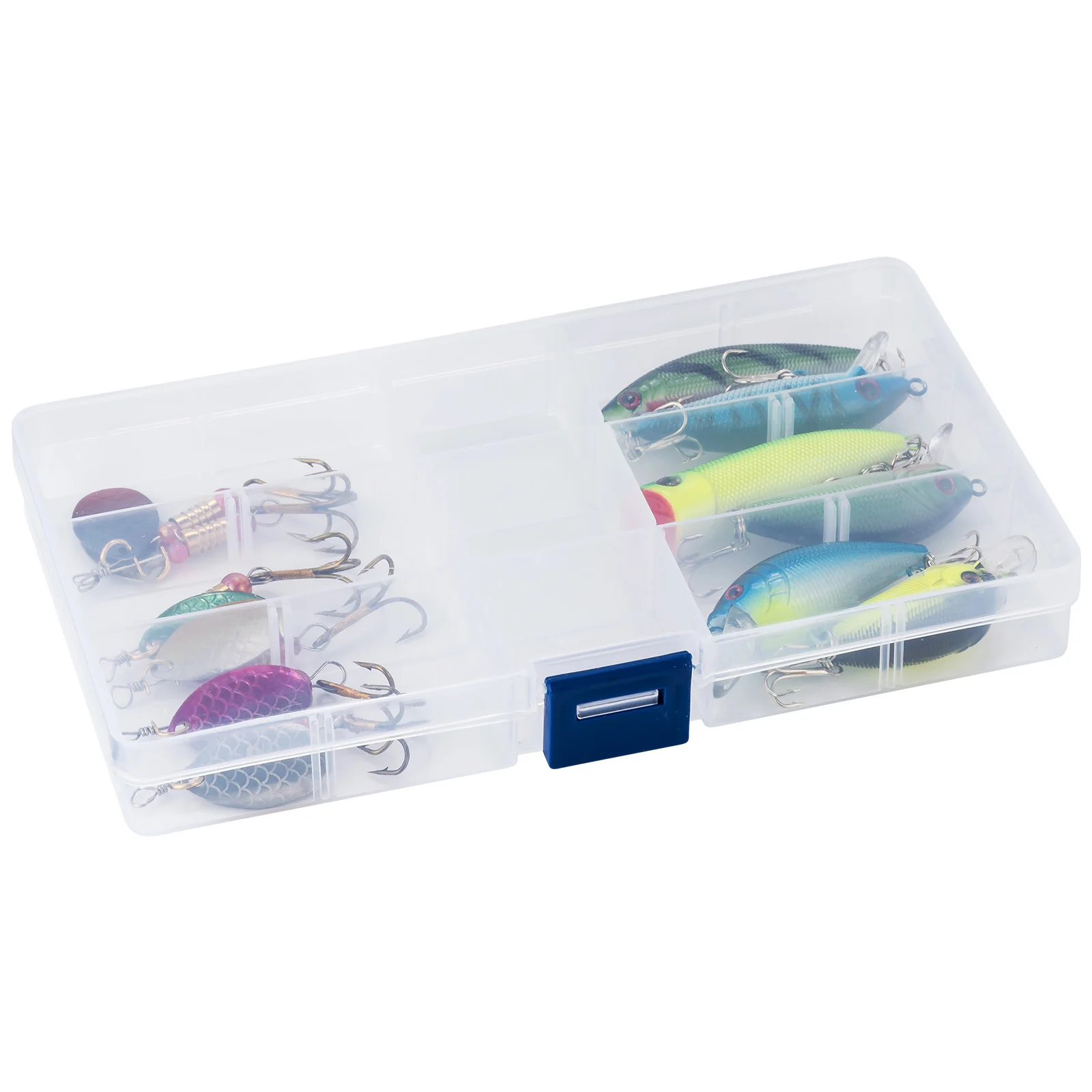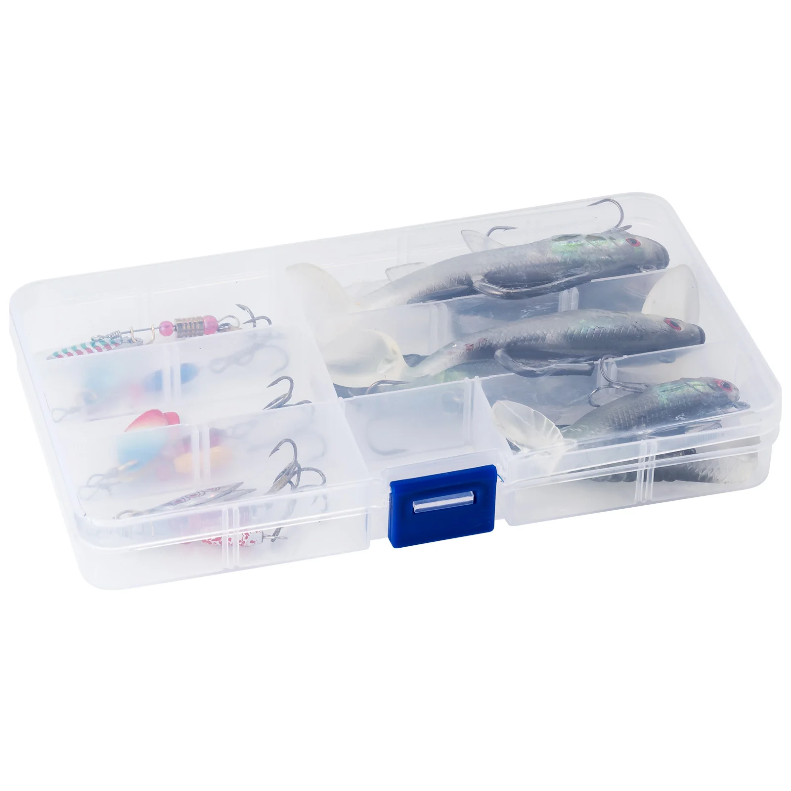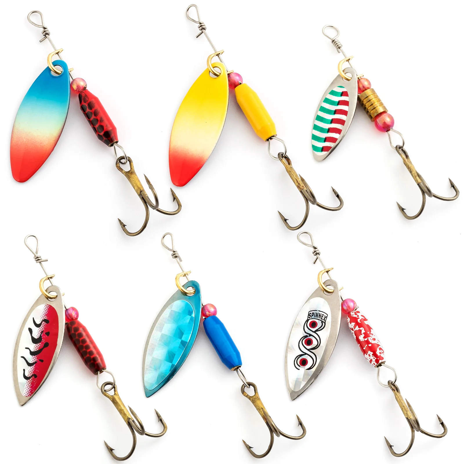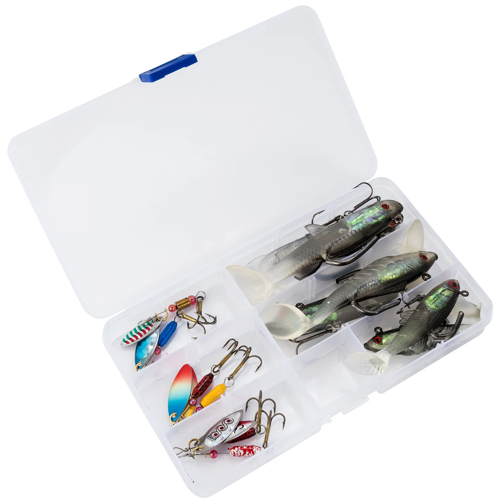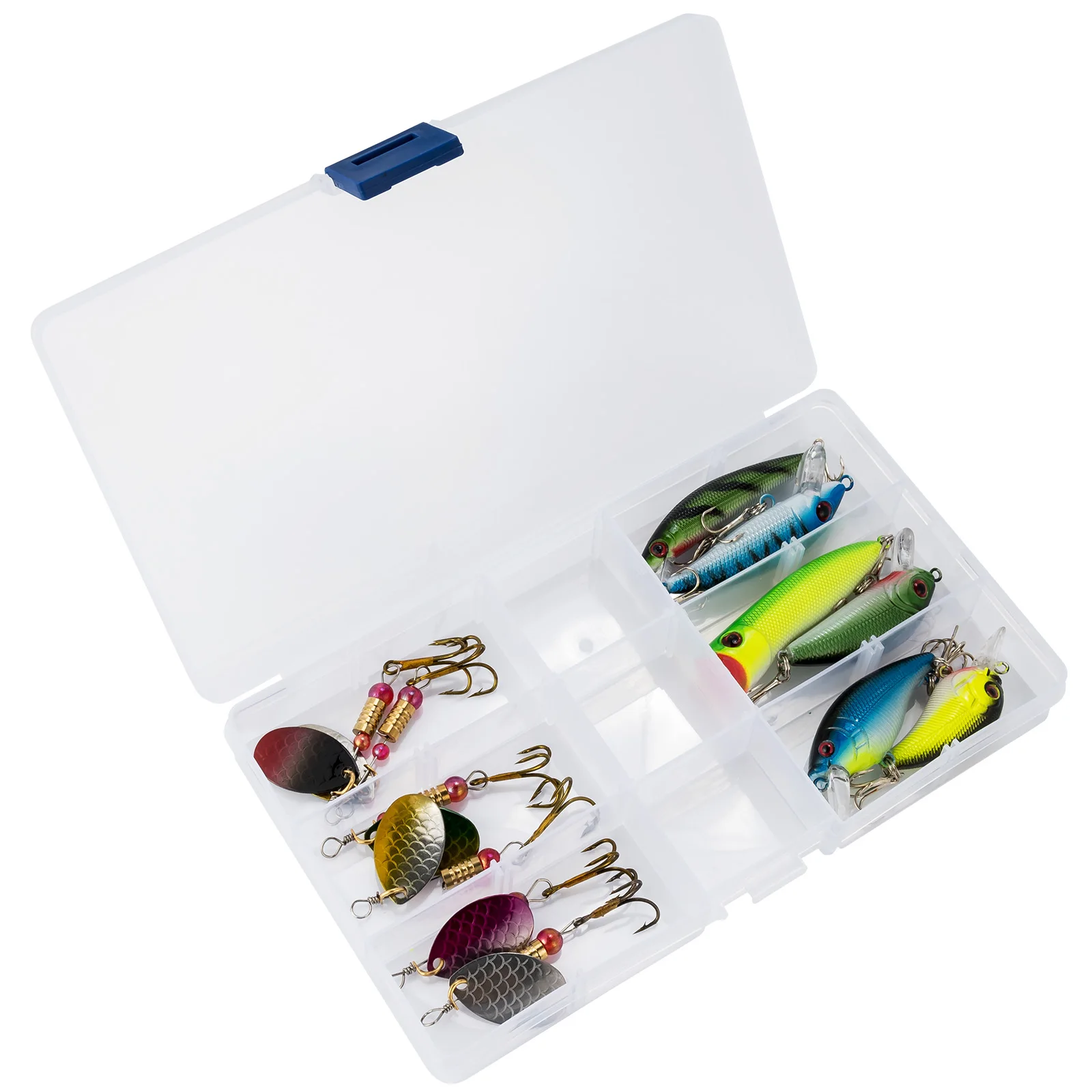 Componentes Premium:Todos los señuelos de este kit están hechos de componentes de alta calidad. Los spinnerbaits están hechos con ejes de acero inoxidable y cuerpo de latón con cuchillas giratorias de pintura láser. Los señuelos duros están pintados con un recubrimiento láser altamente detallado. Los cebos blandos son extremadamente realistas y están hechos de silicona resistente al desgarro. Cada señuelo está armado con un gancho de acero de alto carbono para asegurar su captura.