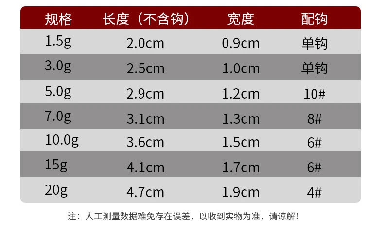 Peso: 1,5 g/3 g/5 g/7 g/10 g/15 g/20 g