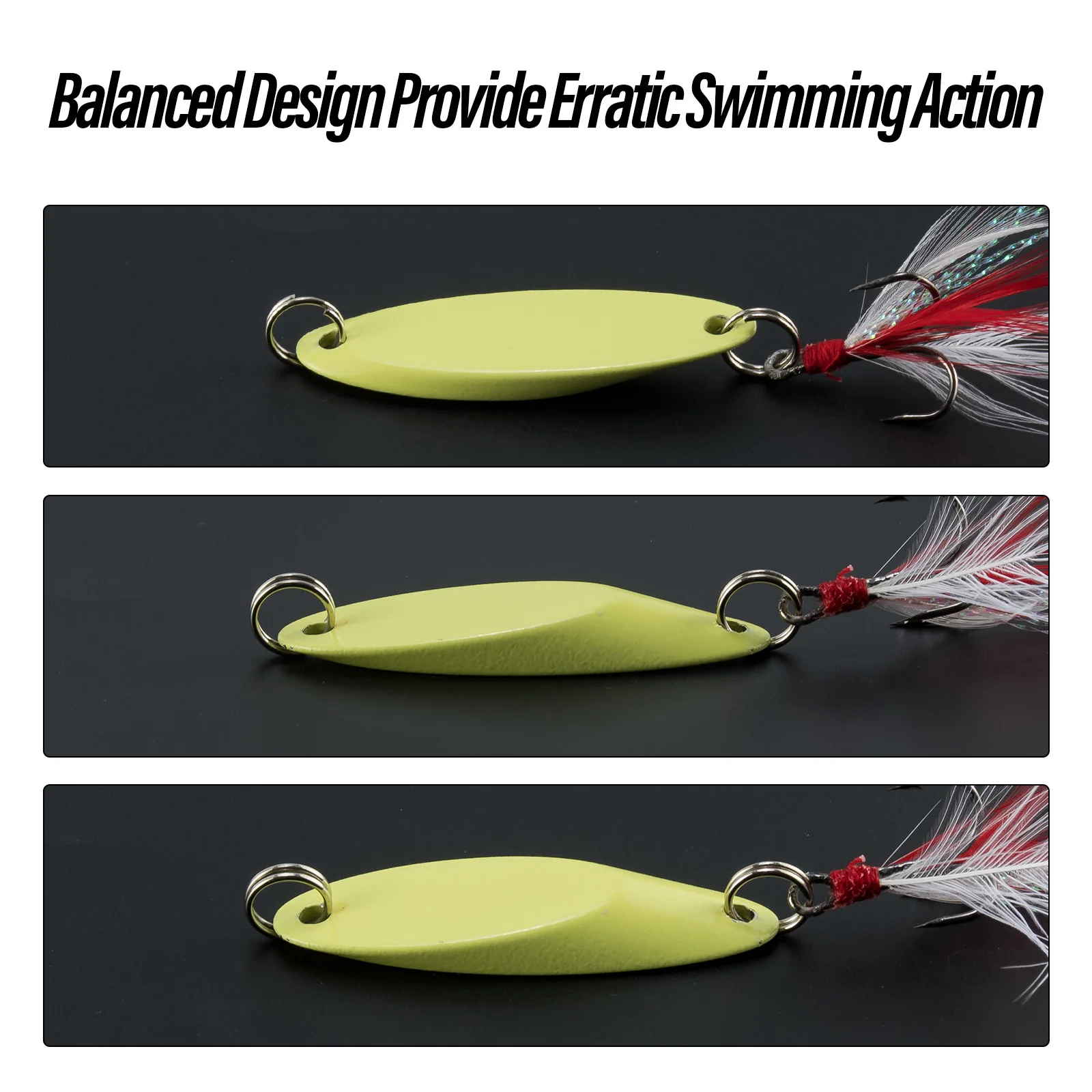 Patrones estrictamente seleccionados: Cada señuelo de metal en este surtido presenta diferentes patrones estrictamente seleccionados entre miles de hilanderos y cucharas