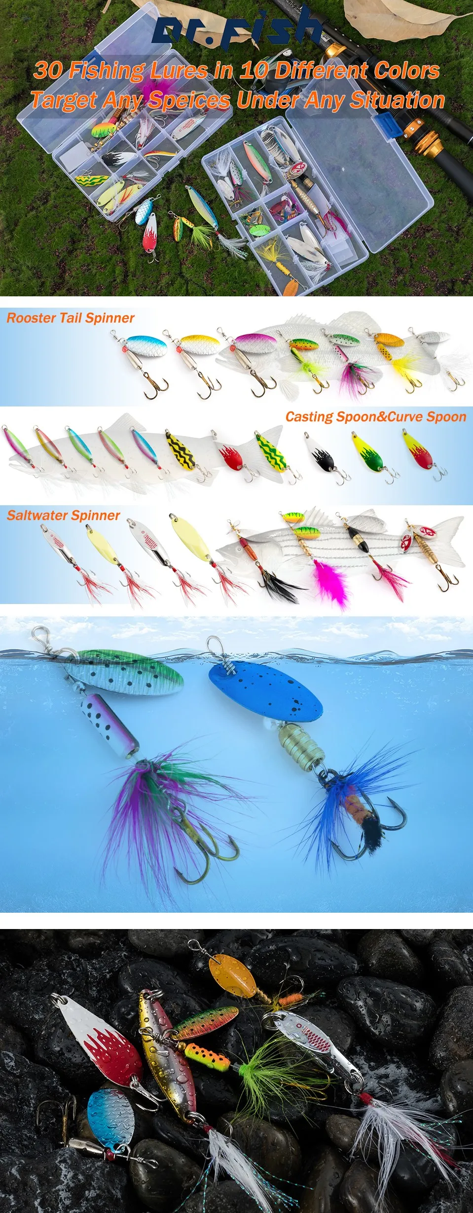 Ideal tanto para agua dulce como salada: Spinner de agua salada es de 0,3-0,5 oz. Otros spinners y señuelos de peso van desde 0,14-0,5 oz. Tamaño de la caja de señuelos: 3,8x2,9x0,83 pulgadas