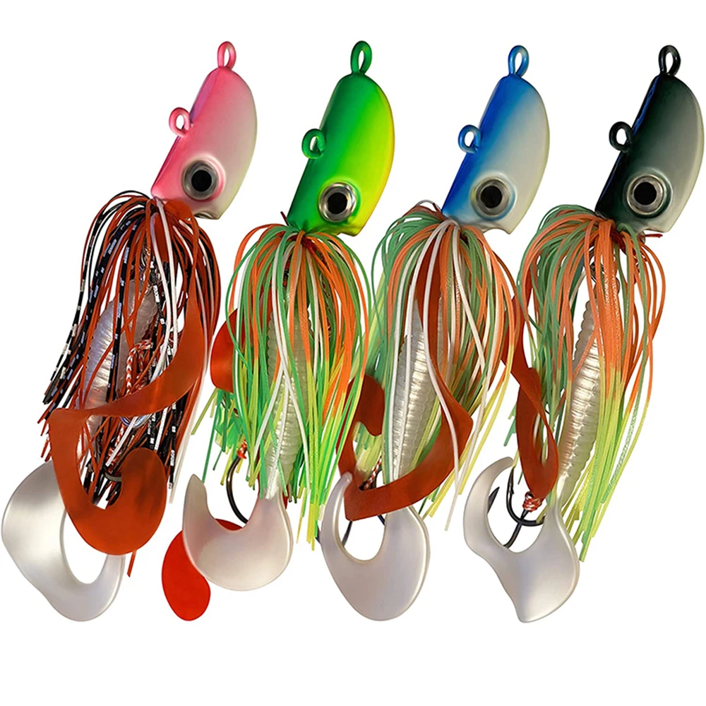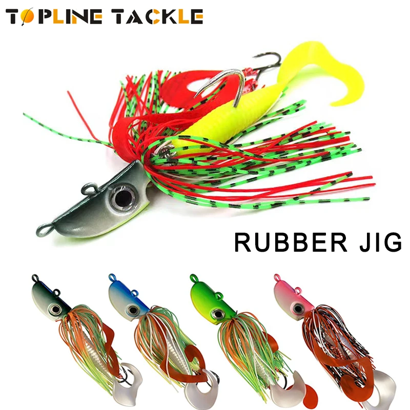 Topline aparejos de goma lenta cabeza de plantilla señuelo resplandor deslizador pargo 20g-150g luminoso mar pesca Jigs anzuelos falda barba Weedless Spinner cebo señuelosMarca: Topline Tackle