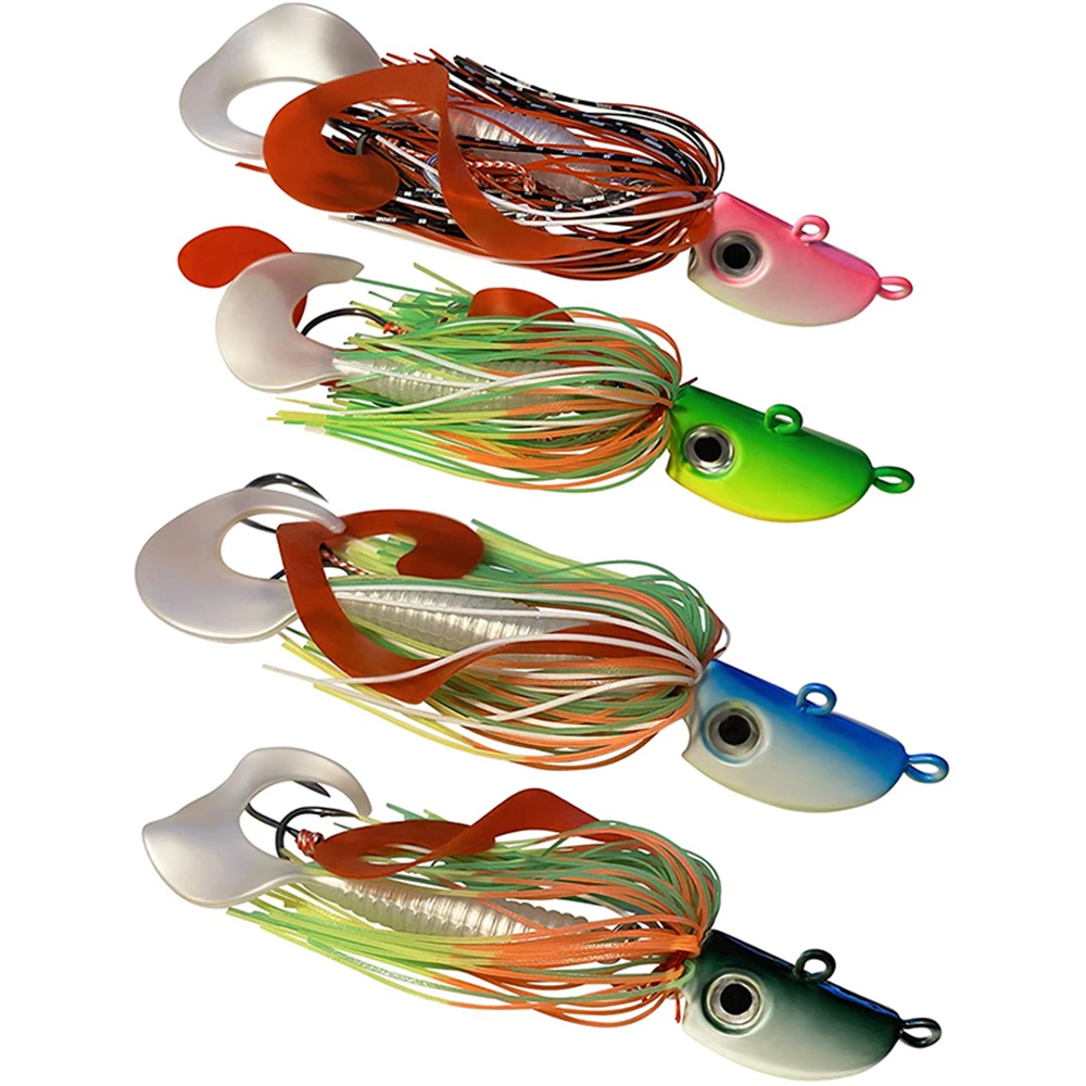 Premium jig head SPINNER cebo Señuelos de Pesca de metal con borlas de silicona