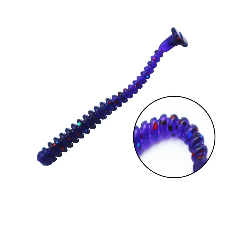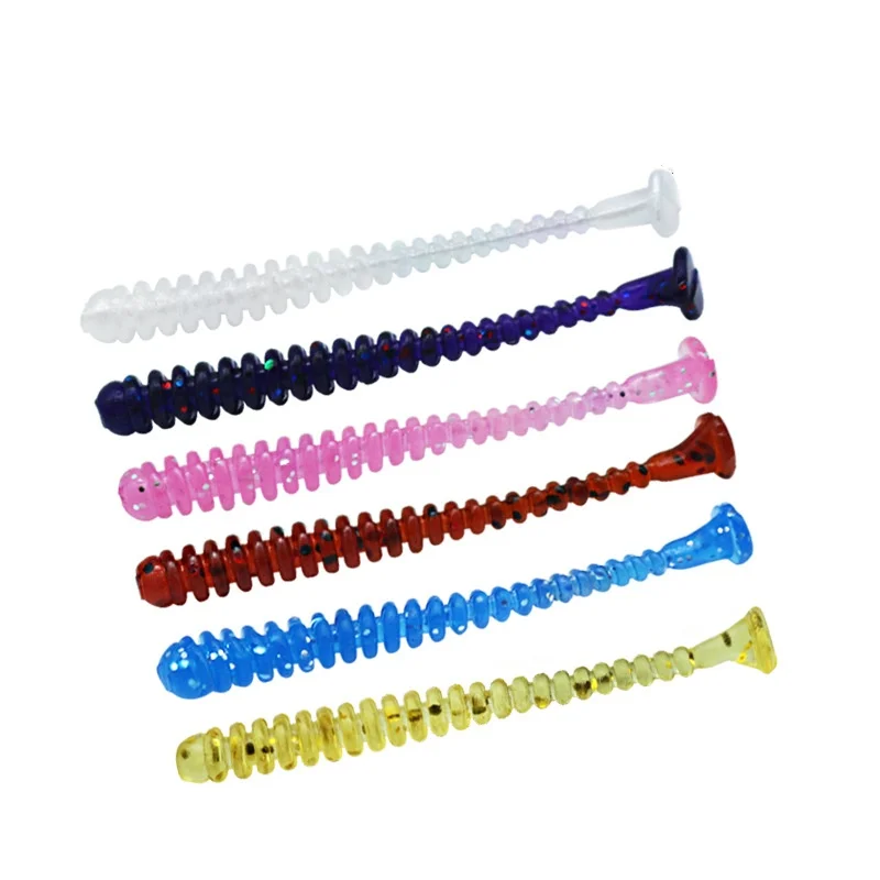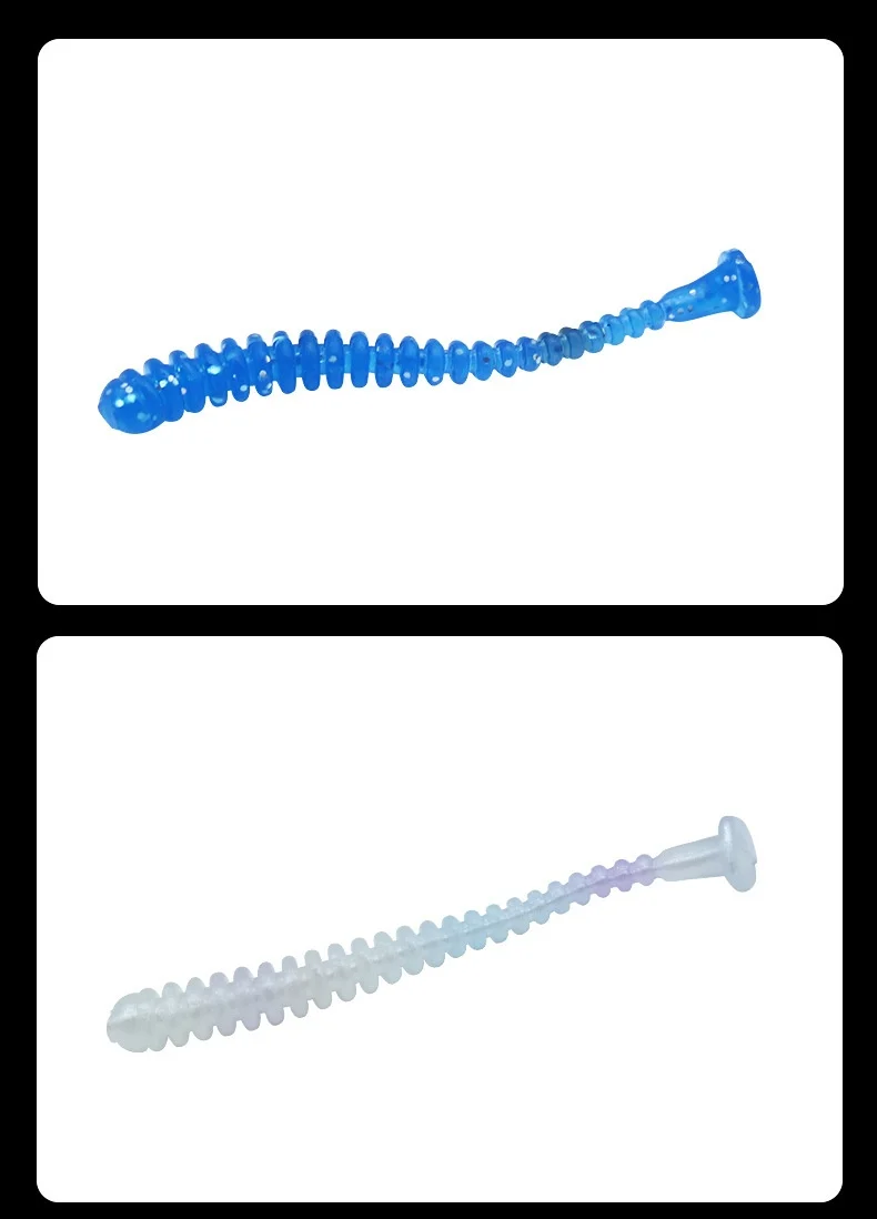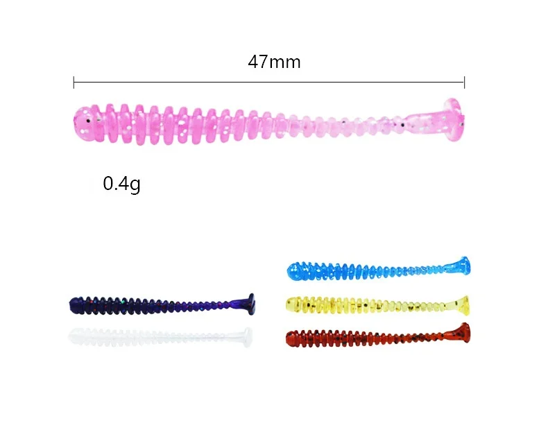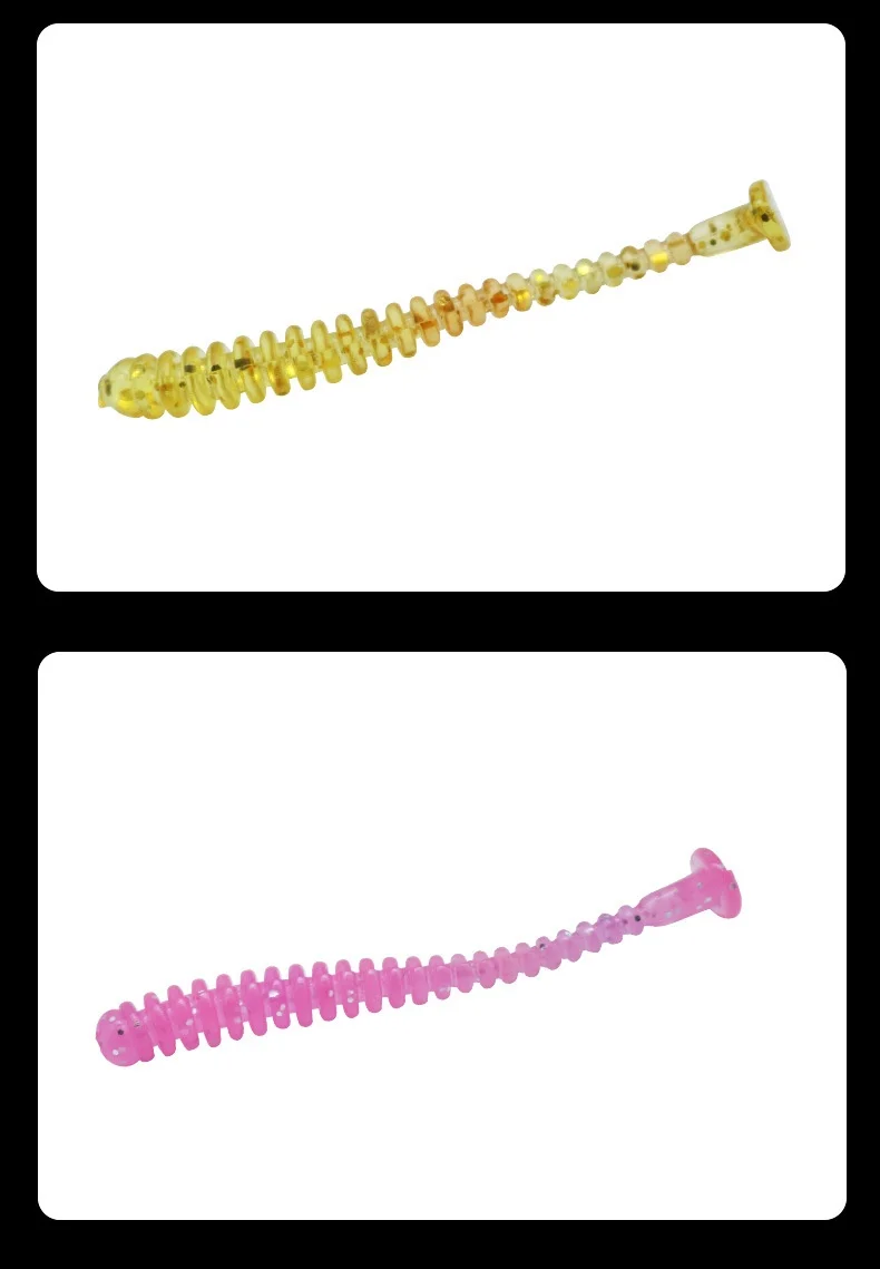 Señuelo de gusano de pesca, cola en T, cebo suave, colas de tornillo de raíz fina Artificial, 4,5 cm/0,4g, pez amarillo de pozo negro, lote de 30 piezas en oferta