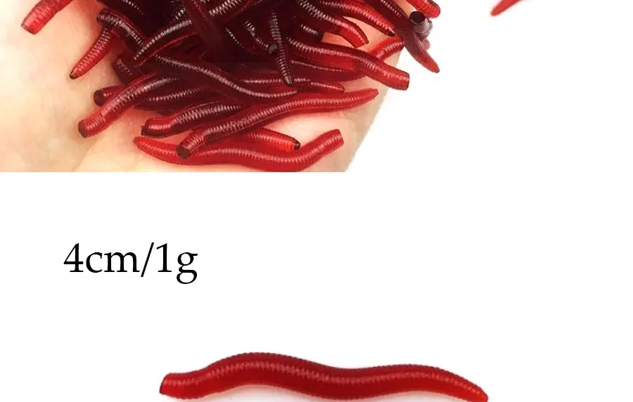 Señuelo de gusano de tierra para pesca de carpa, cebo artificial suave de 4cm, 1g, 100 Uds.