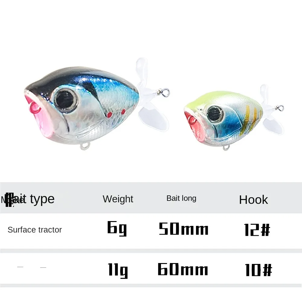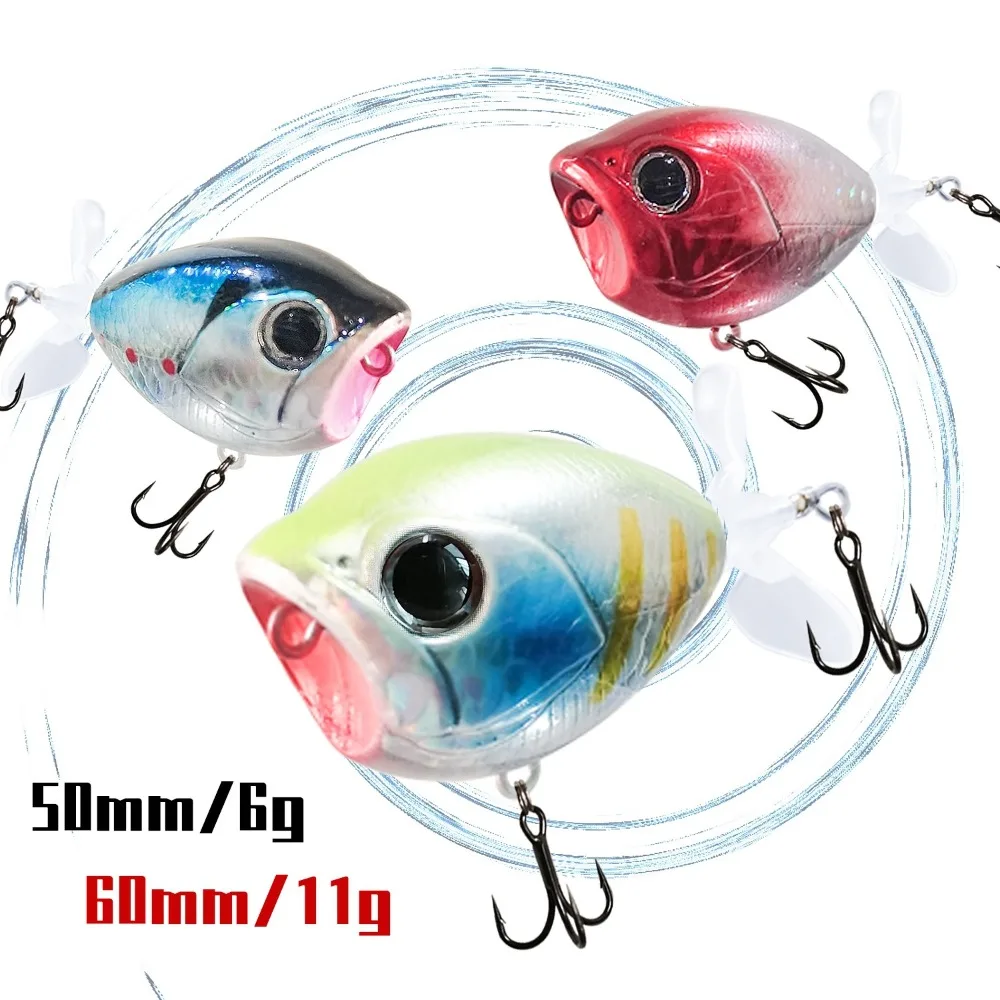 Tipo de señuelo: señuelo de pesca duro Longitud: 50mm(1.97in) 60mm(2.36in) Peso: 6g 11g Profundidad de buceo: Topwater Flotabilidad: cebos de pesca flotantes Anzuelos: 2 anzuelos VMC Ojos equipados: ojos de pez 3D Anillos: bicíclico-cebos de cola giratoria de 360 °: La cola gira sobre el arnés y crea retumbos atractivos para atraer a esos peces a morder. El tamaño de la cola y el ángulo perfectos del cebo giratorio para hacer un sonido rítmico que simplemente vuelve locos a los peces. Esta cola está hecha de plástico que se flexiona de nuevo en su lugar, ya sea que se morde o se lance en una roca. -Excelente cuerpo de señuelos: el señuelo está terminado con ojos vivos en 3D y un trabajo de pintura ultrarrealista. Escamas de pez láser realistas con colores brillantes que reflejan la luz para atraer a los peces. La pequeña pieza de metal incorporada mantiene los señuelos equilibrados y obtiene una distancia de lanzamiento decente. Es el mejor señuelo de pesca para Lucio lucioperca, pez almizclado. -Verdadera experiencia visual: El tamaño perfecto y el color impresionante le brindan una experiencia visual real. Los acabados reflectantes multicapa y los ojos realistas en 3D pueden atraer a más peces. La forma en que se mueven en el agua es como un pez real. -Anzuelo de alta calidad: 2 anzuelos súper afilados, excelente capacidad de perforación, especialmente importante para rayas escolares y otras lubinas, los peces no golpean simplemente el señuelo de pesca de cola giratoria, lo atacan. El paquete incluye: 1 señuelo de pesca