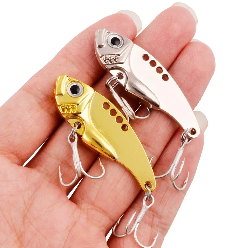 Señuelo de hoja Vib de Metal, cebos de vibración que se hunden, ojos 3D, vibración Artificial para lubina, perca, pesca de invierno, tiro largo, 3/7/10/15/20G