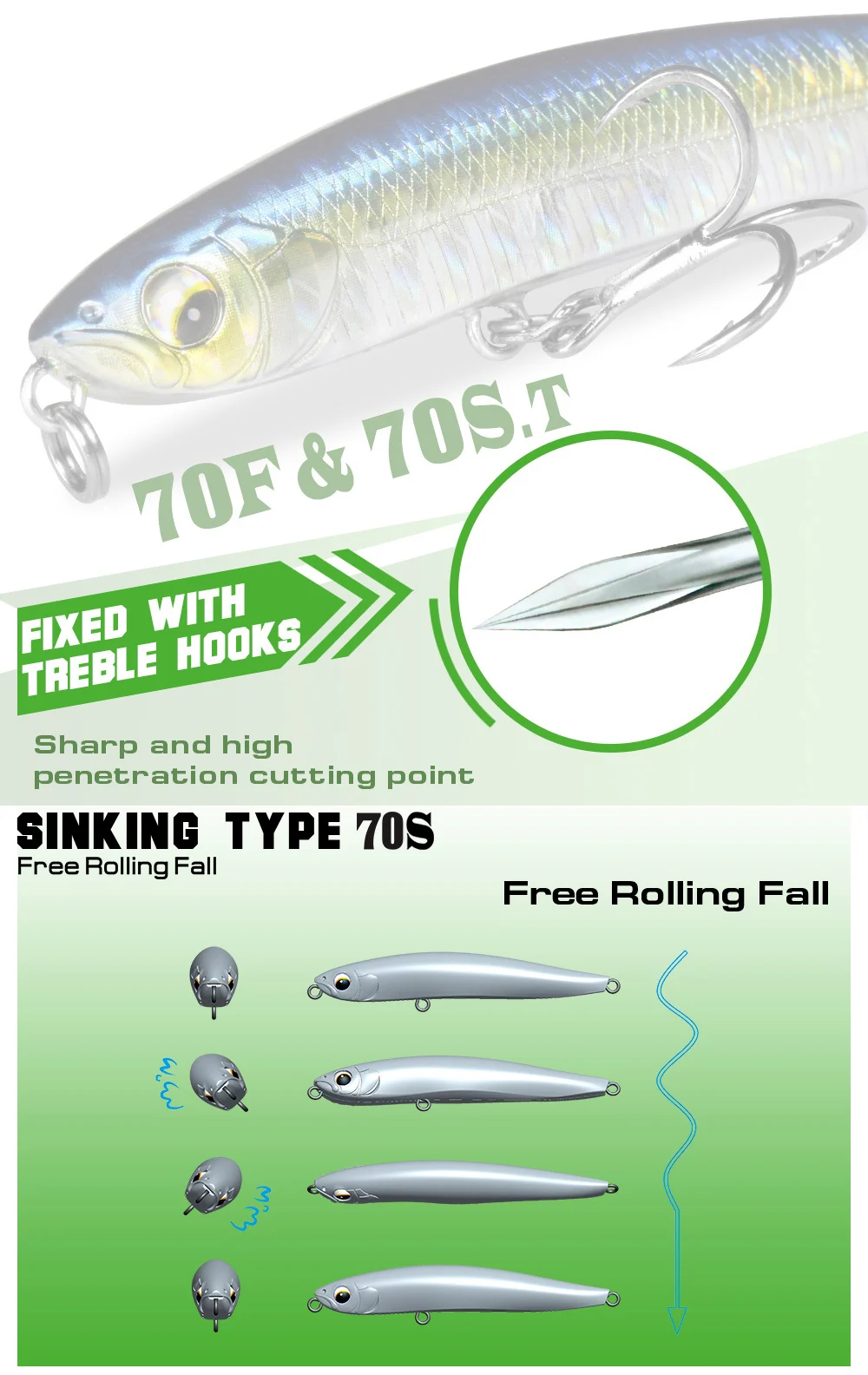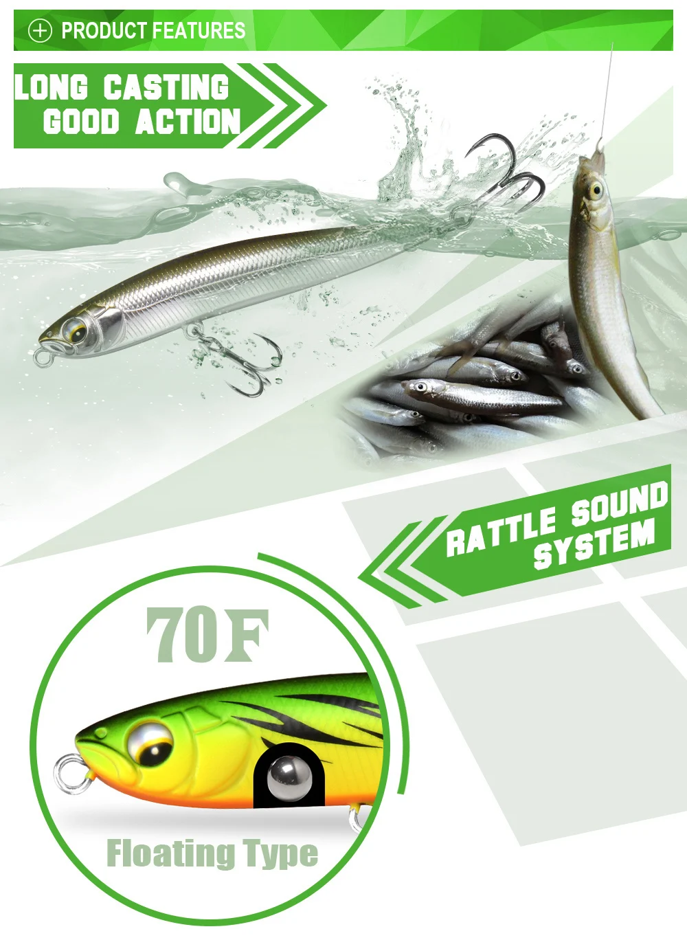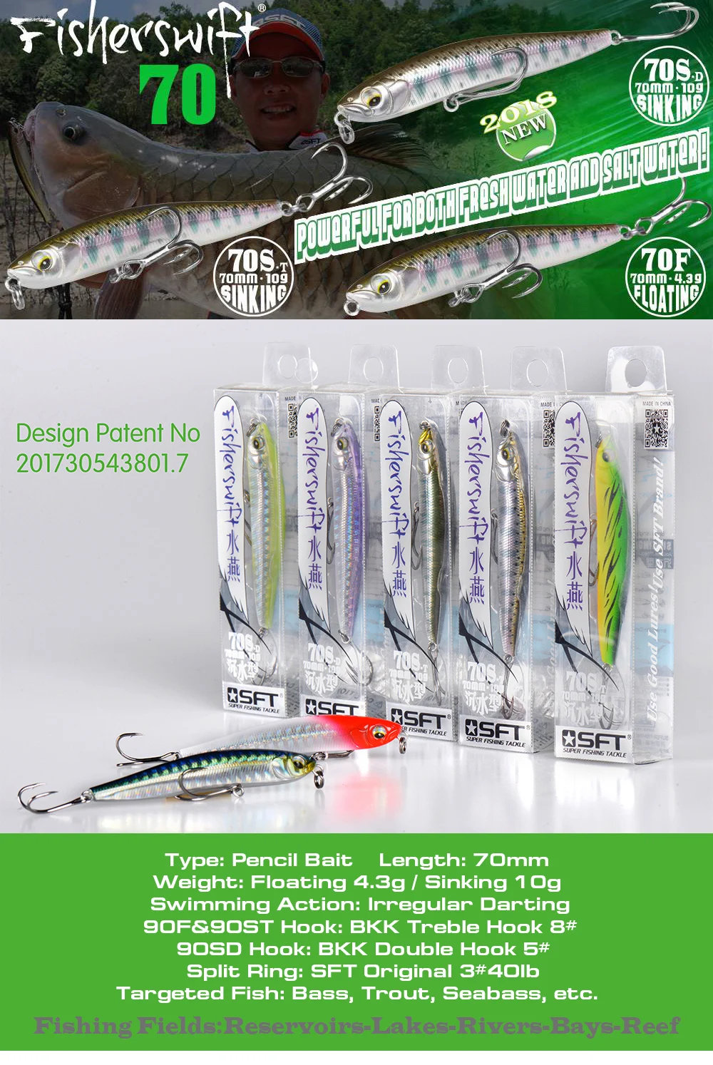 Señuelo hundido SFT Stickbait 70mm 4,3/10g señuelos tipo lápiz flotante señuelo de pesca cebo Artificial rodante aparejos para Lucio pez Wobbler