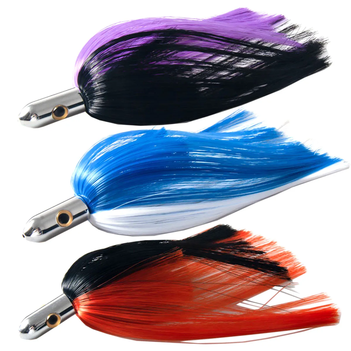 Señuelo Ilander con cabeza de latón de 9 ", 100g, cebo de curricán, plantilla de gran juego, pesca de atún, señuelo de curricán de Metal con pelo de nailon para atún Mahi Marlin