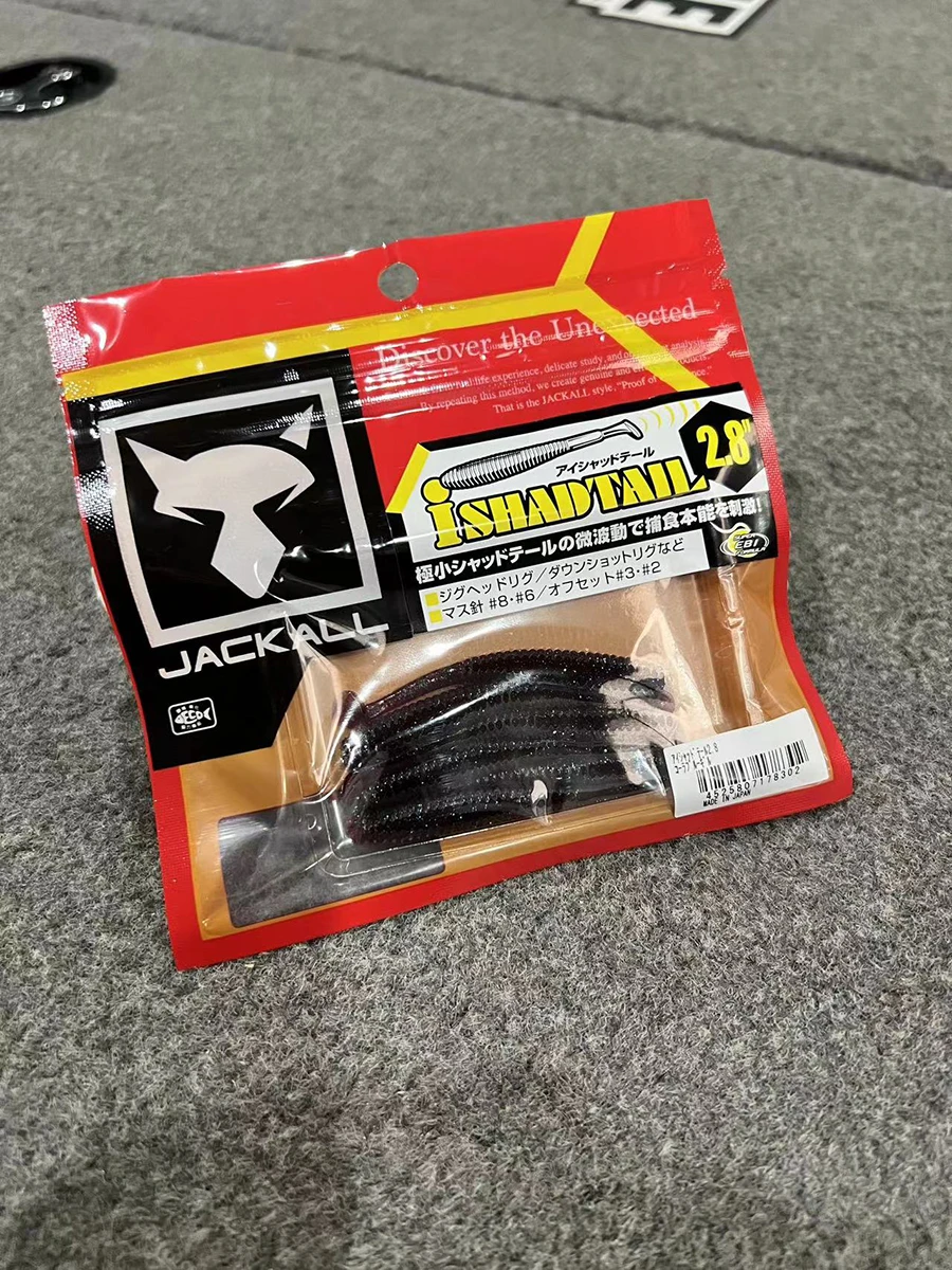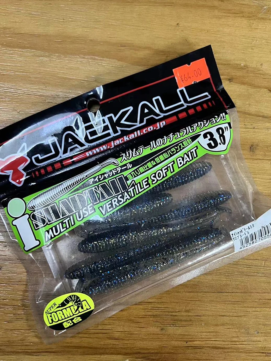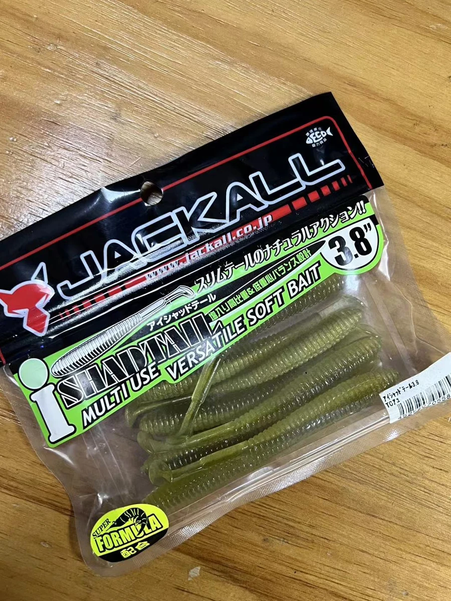 Señuelo JACKALL japonés, cebo falso integral, cola en T, pez blando, cola de sábalo, cebo suave fino negro de 2,8 pulgadas