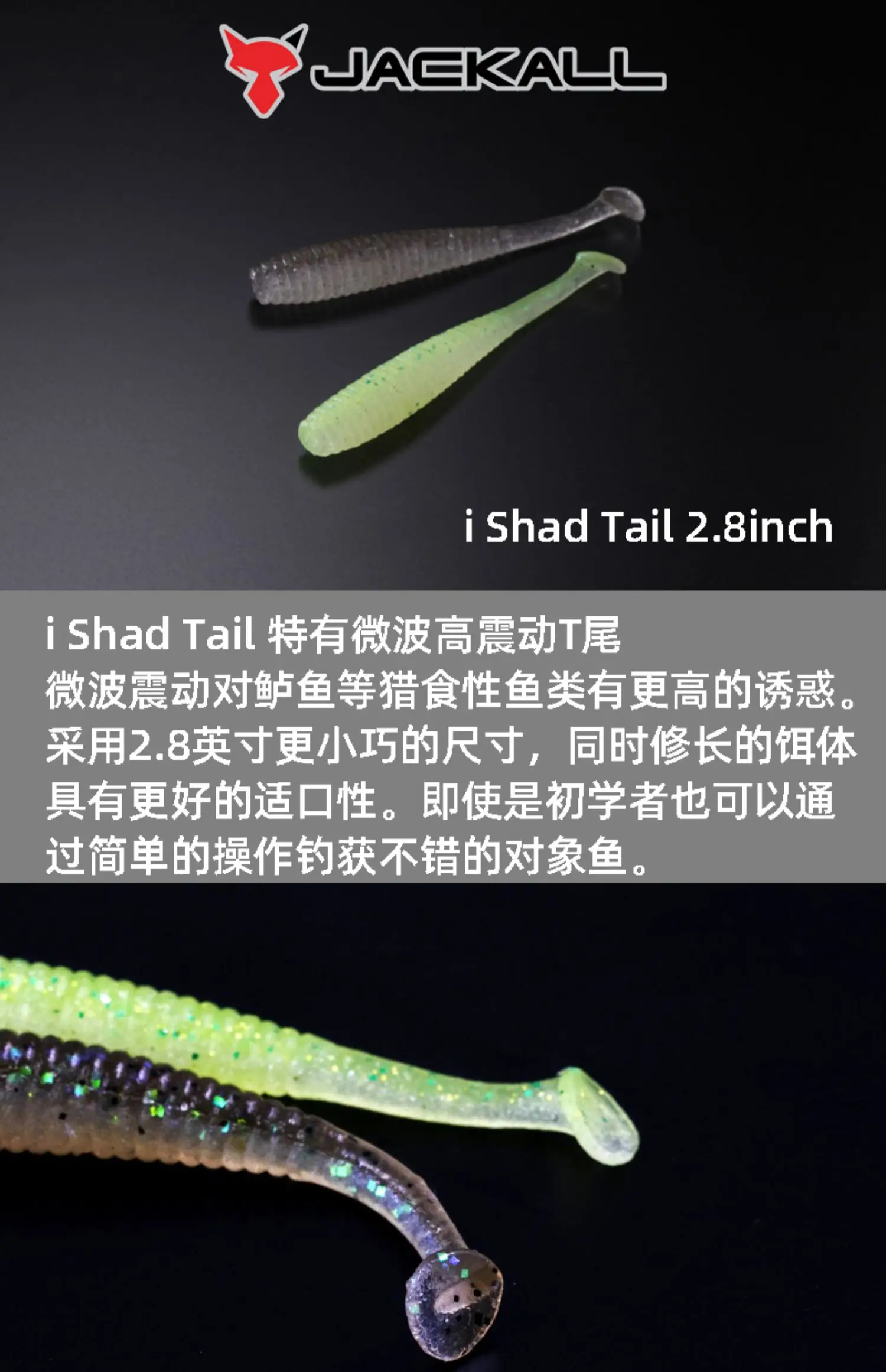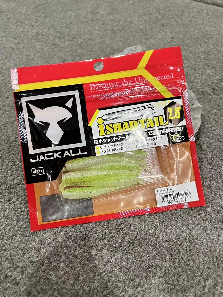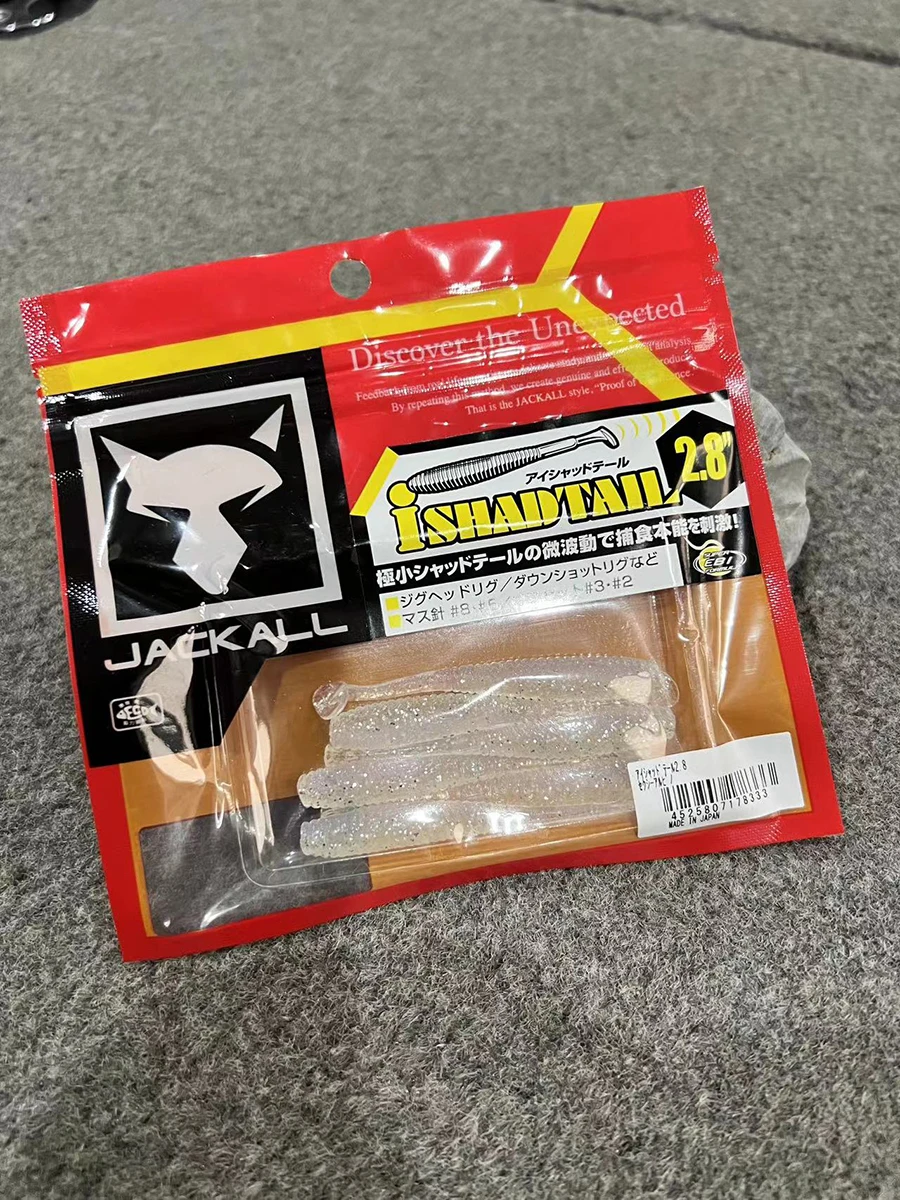 Señuelo JACKALL japonés, cebo falso integral, cola en T, pez blando, cola de sábalo, cebo suave fino negro de 2,8 pulgadas