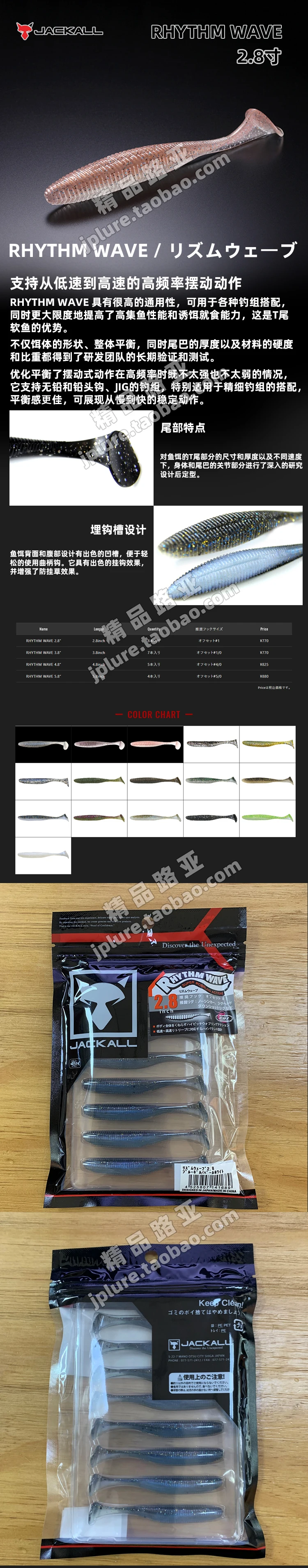 Señuelo JACKALL japonés, cebo suave con ondas de ritmo, cola en T, 2,8 pulgadas, vibración de alta frecuencia, lanzamiento lejano, perca de pez mandarín