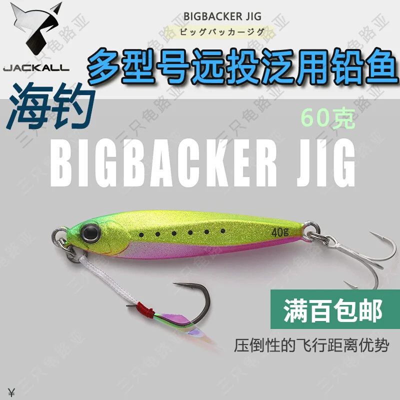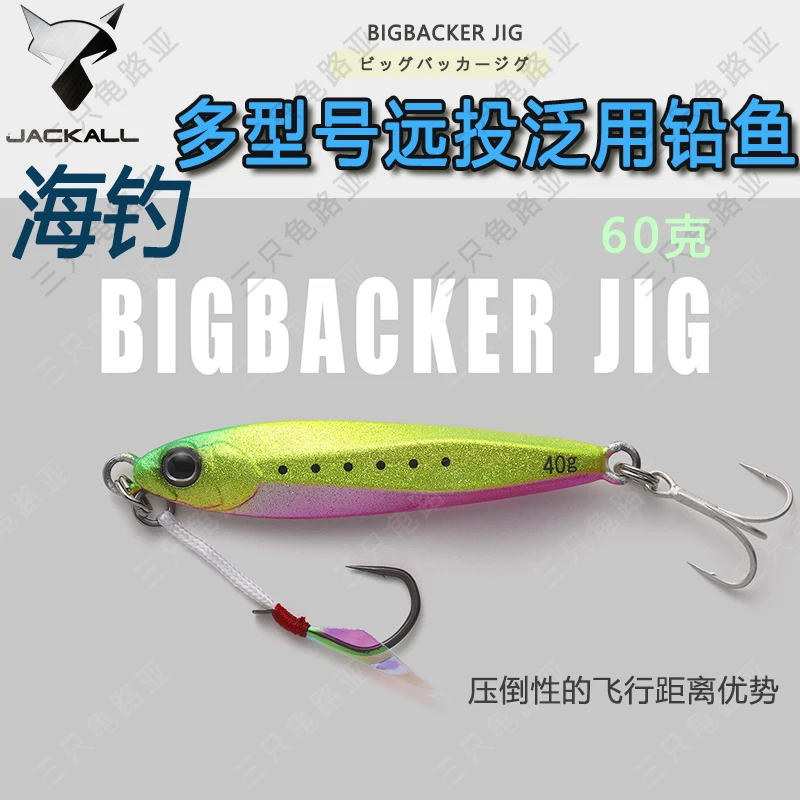 Señuelo Jackall de tres tortugas, cebo falso para pesca en el mar, placa de hierro, larga distancia, BIGBACKERJIG, 60g