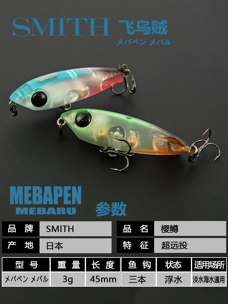 Señuelo japonés Smith ornithoteuhis Volatilis, lápiz flotante Universal de agua dulce, cebo de postura de natación tipo S, 45mm, 3G