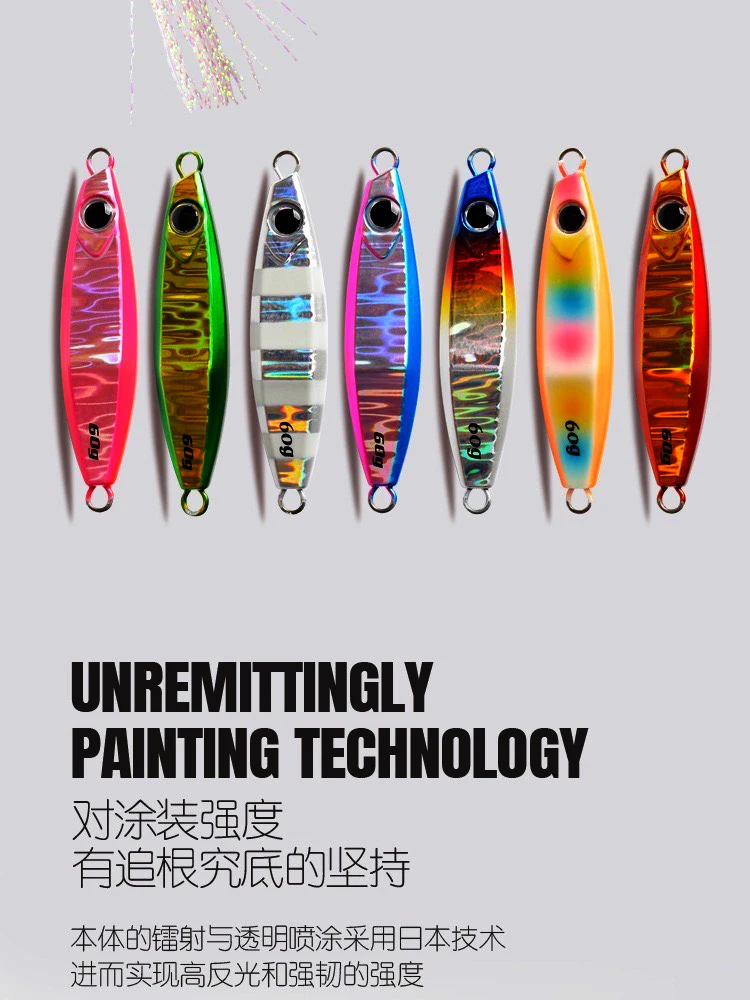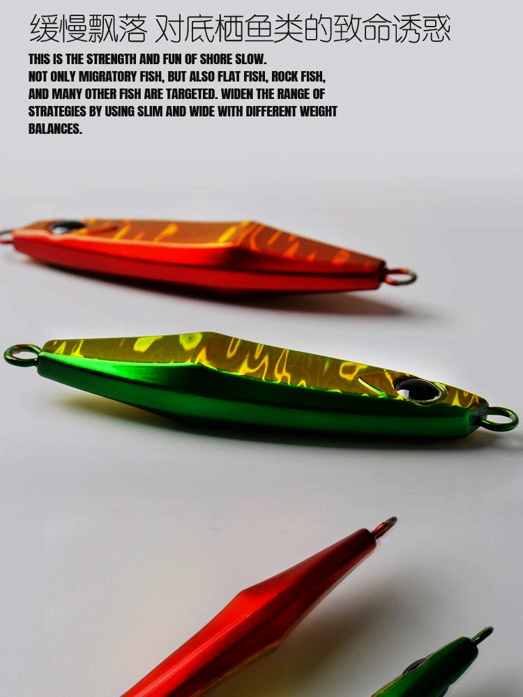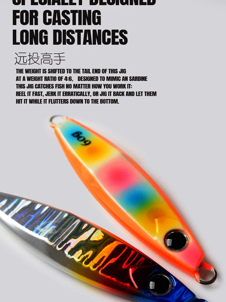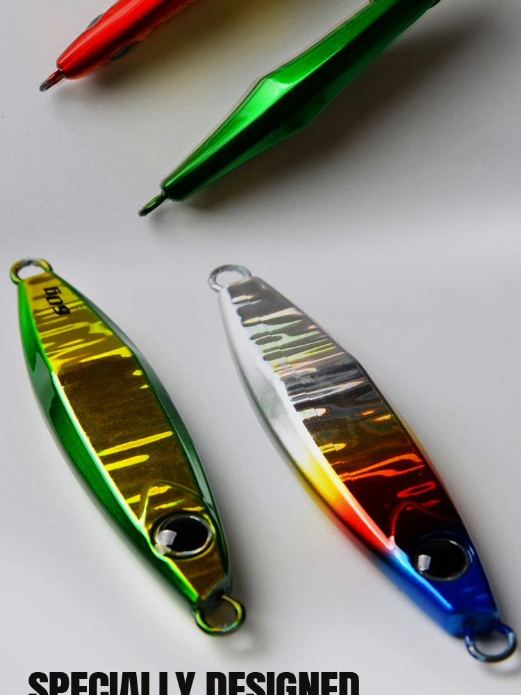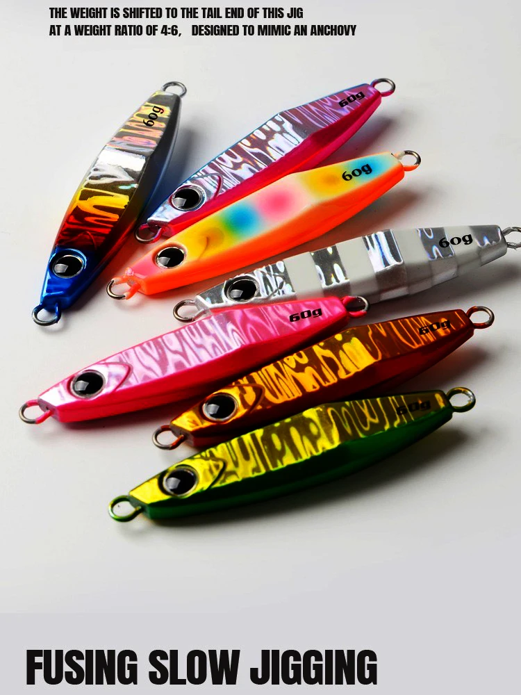Señuelo de JIGGING lento para Orilla, superficie holográfica reflectante, anzuelo MUSTAD afilado, cebo de pesca para Orilla y barco, plantilla de METAL que se hunde