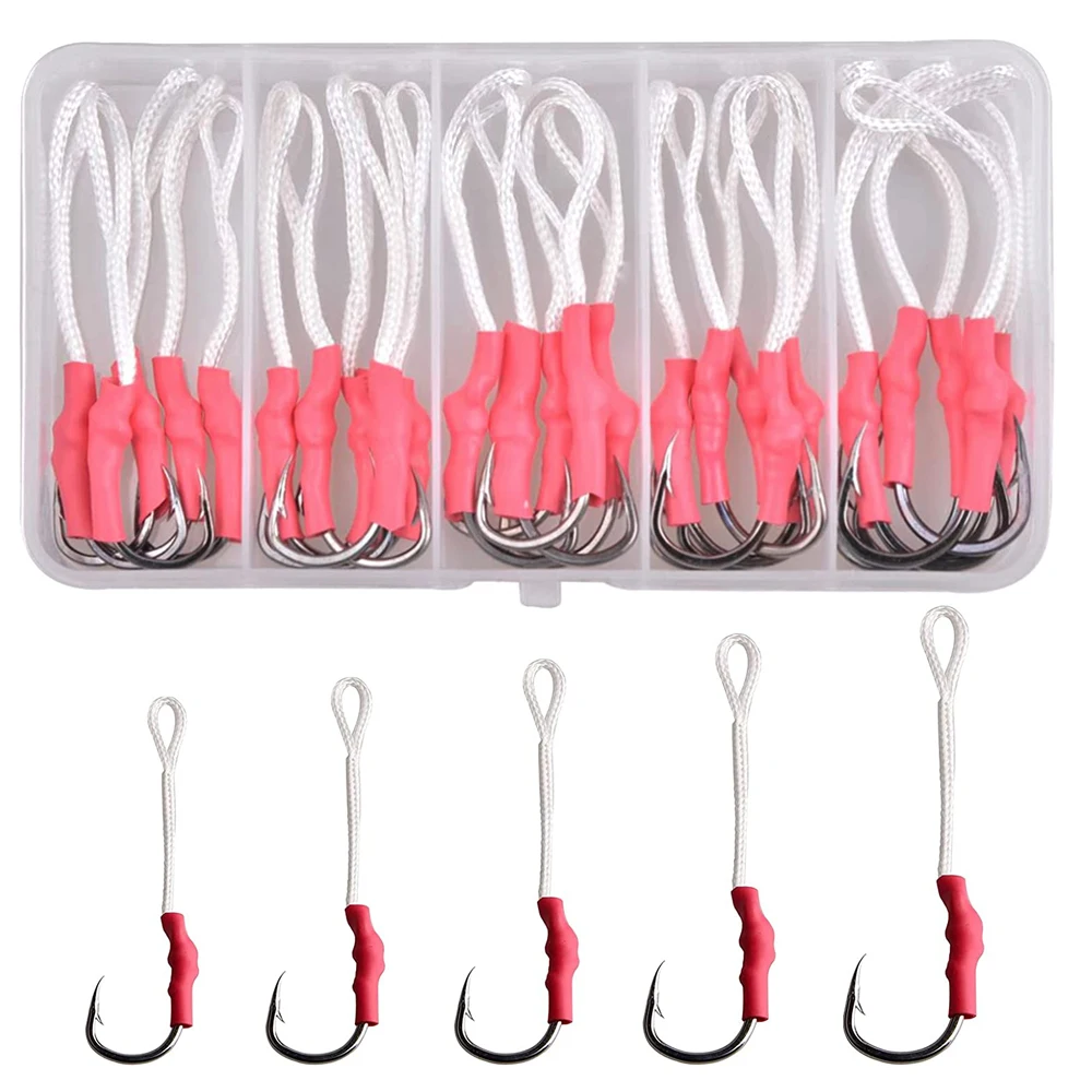 25 uds de la plantilla de Metal ayudar gancho lento señuelo de Jigging lubina rayada equipo para pesca ganchos de púas gancho atar anzuelo 1/0 -5/0
