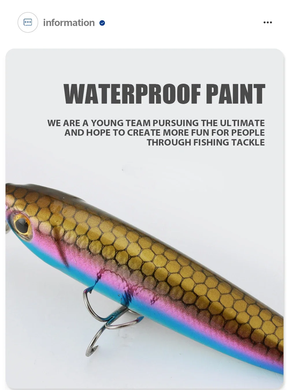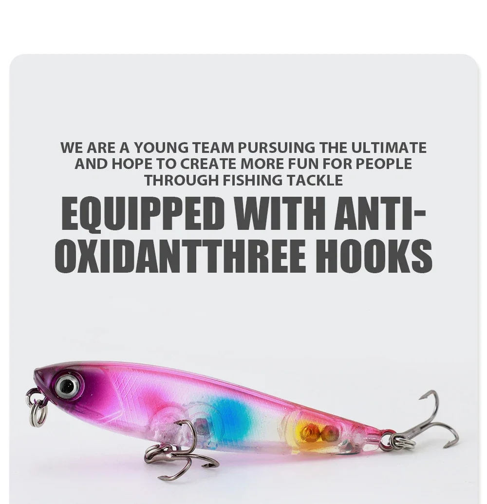 60mm lápiz de hundimiento lento cebo duro 3,3G Stickbaits señuelo de pesca en forma de I perro caminando Swimbait cebo de pesca Biomimeticpencil cebo 1. COLORES BRILLANTES: increíble gama de colores y ojos 3D realistas, las formas realistas que nadan en el agua atraen más la atención de los peces. 2. BOLA DE METAL EN EL INTERIOR: con bola de acero en el interior, controla el baricentro fácilmente, lanza lejos, diseño de modelo de ruido, hace que los Señuelos de Pesca sean más fáciles de detectar. 3. Ganchos duraderos: excelente capacidad de perforación, fuerte resistencia a la abrasión, para garantizar el éxito de los bajos 4. Las mordeduras de peces inteligentes ocurren con frecuencia debido a las microondas extremadamente naturales. 5. El juego combinado de "suciedad de contracción" y "acción lenta en forma de I" produce resultados de pesca abrumadores.