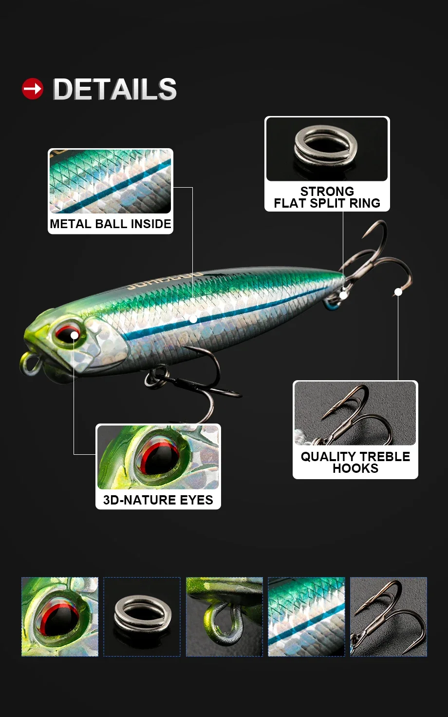 3. Los cebos tienen pintura realista y ojos 3D vívidos, hacen que el cebo parezca un pez real nadando en el agua durante la pesca.