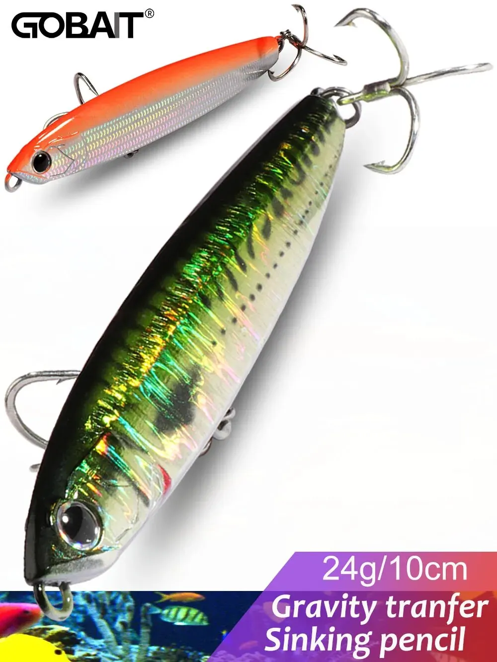 GOBAIT hundimiento lápiz cebo 24g 10cm transferencia por gravedad Popper anzuelo swimbait pesca wobbler minnow VIB jerkbait SPINNER aparejos carpa herramienta de pesca equipo señuelo de silicona