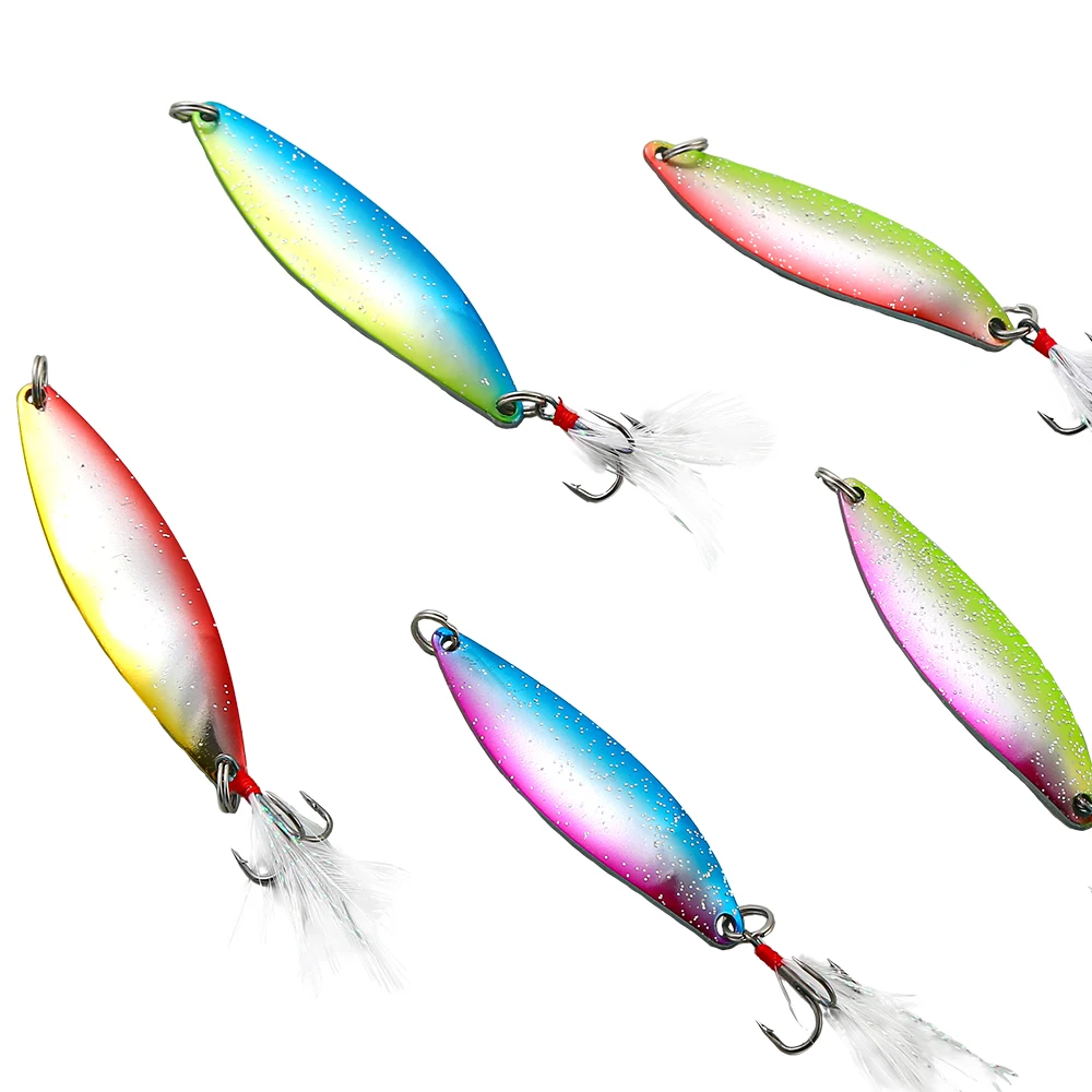 Arco Iris colores VIB 5G 8g 17g señuelo láser Plantilla de Metal Jigging lento/curricán wobbler cuchara de Metal con gancho de pluma señuelo de pesca de Metal