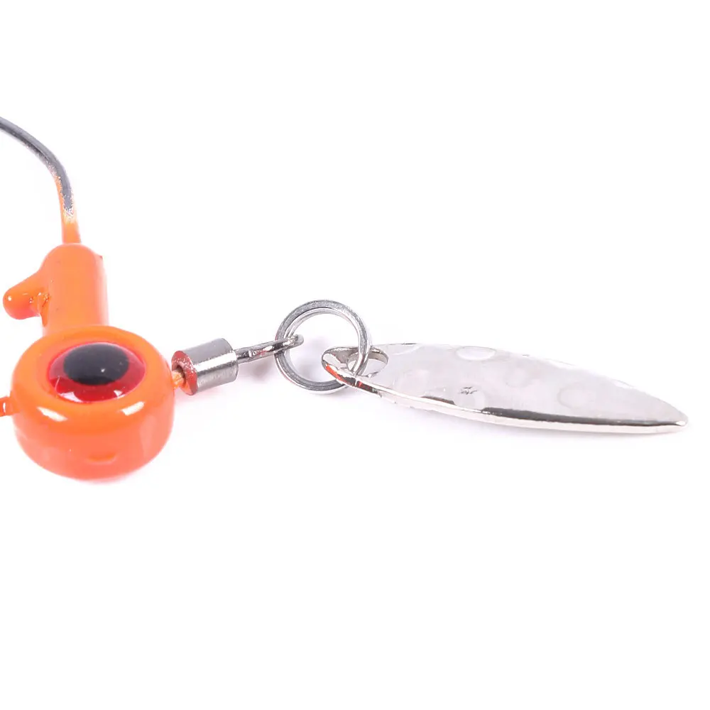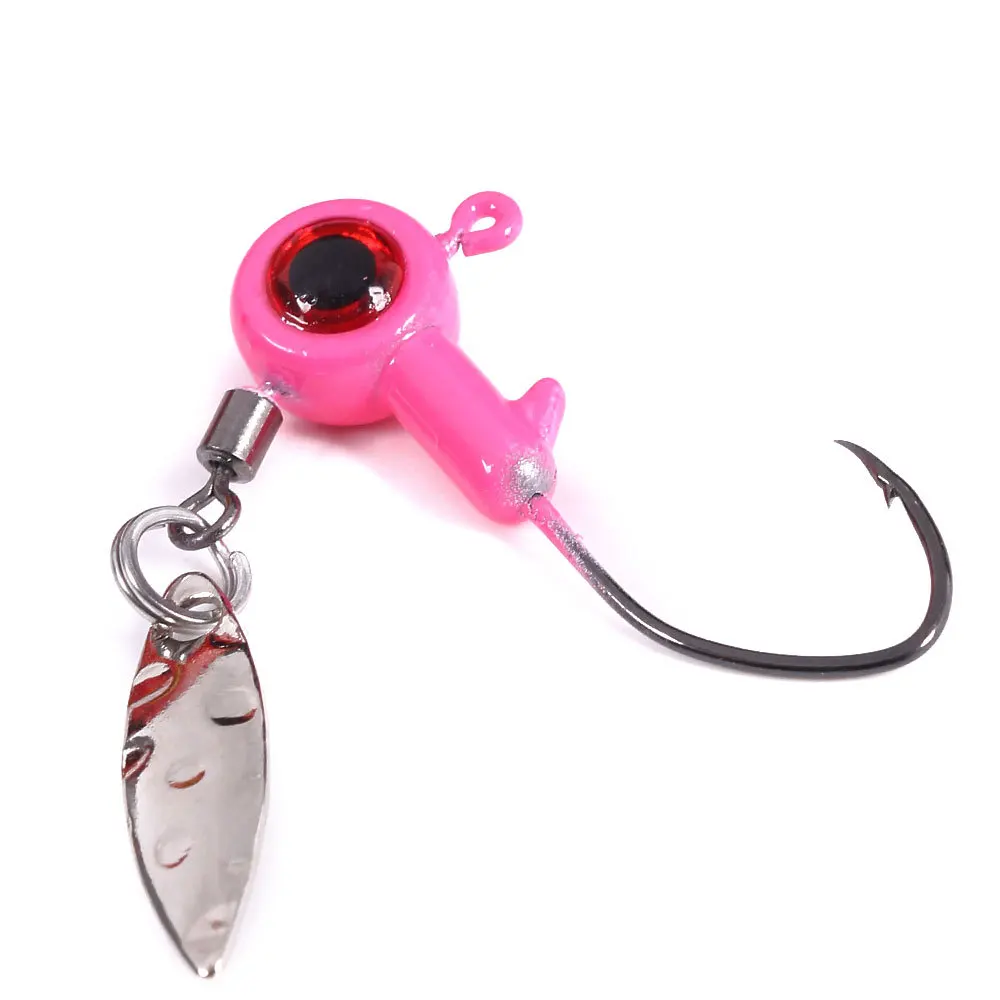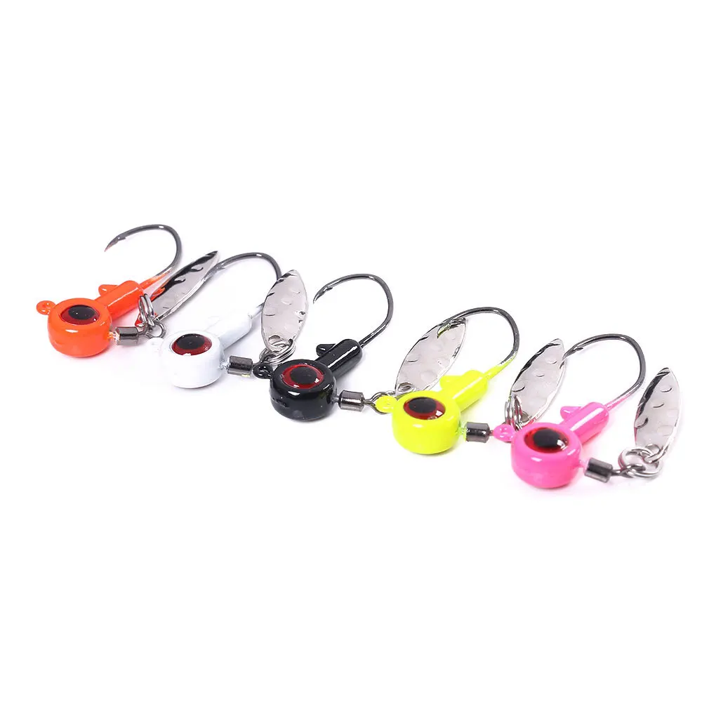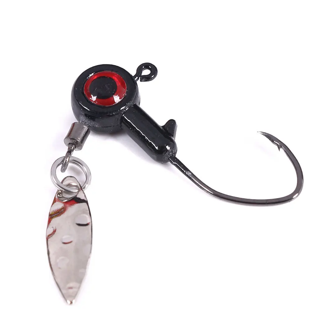 Señuelo de lentejuelas giratorias, anzuelo de cabeza de plomo, 1,75g, 3,5g, anzuelo de ojo 3D con plantilla de púa, pesca en el mar, Roca, gusano suave, 5 unids/lote por paquete