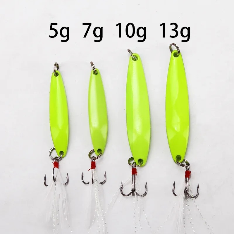 Señuelo de lentejuelas de Metal que brilla en la oscuridad, 5g, 7g, 10g, 13g, tipo hoja de sauce, señuelo de lentejuelas de Metal que se hunde, pesca en el mar, pico de cruz, señuelo para matar lubina, pesca de carpa