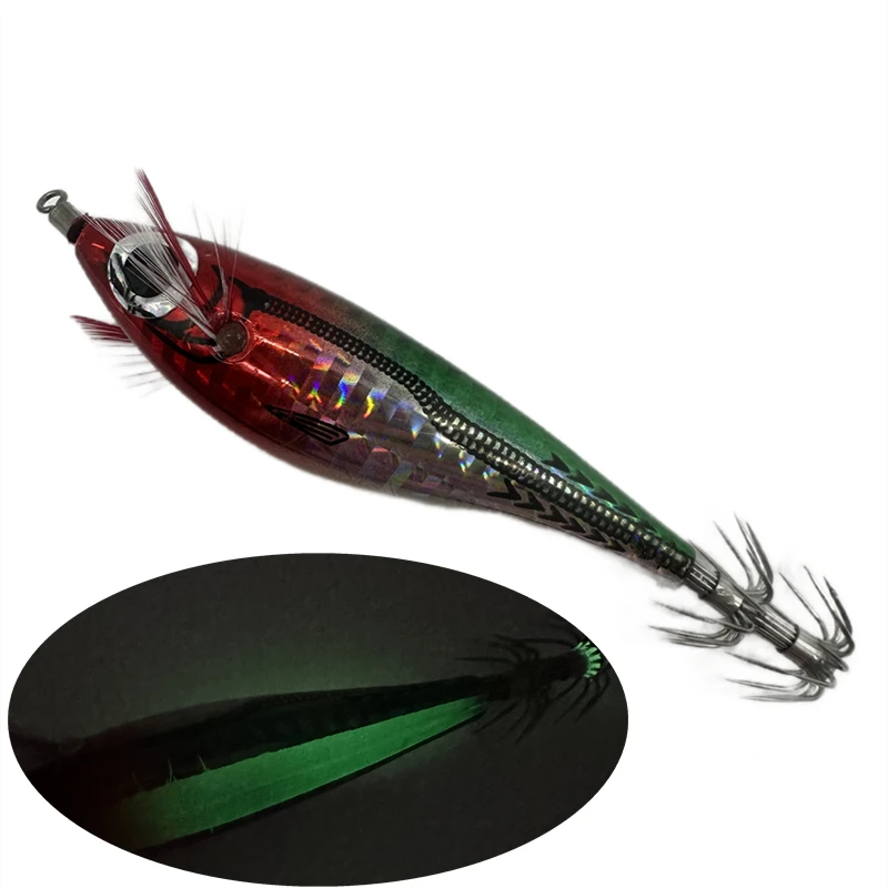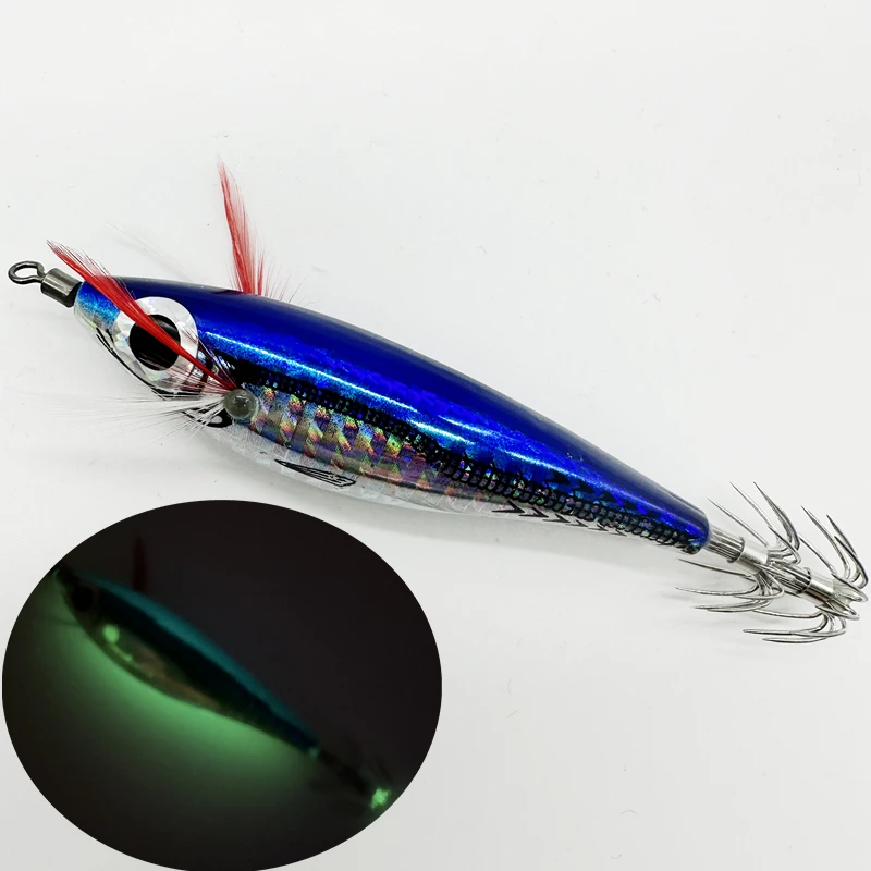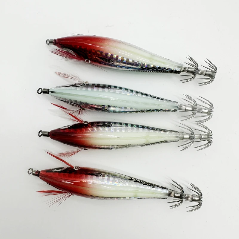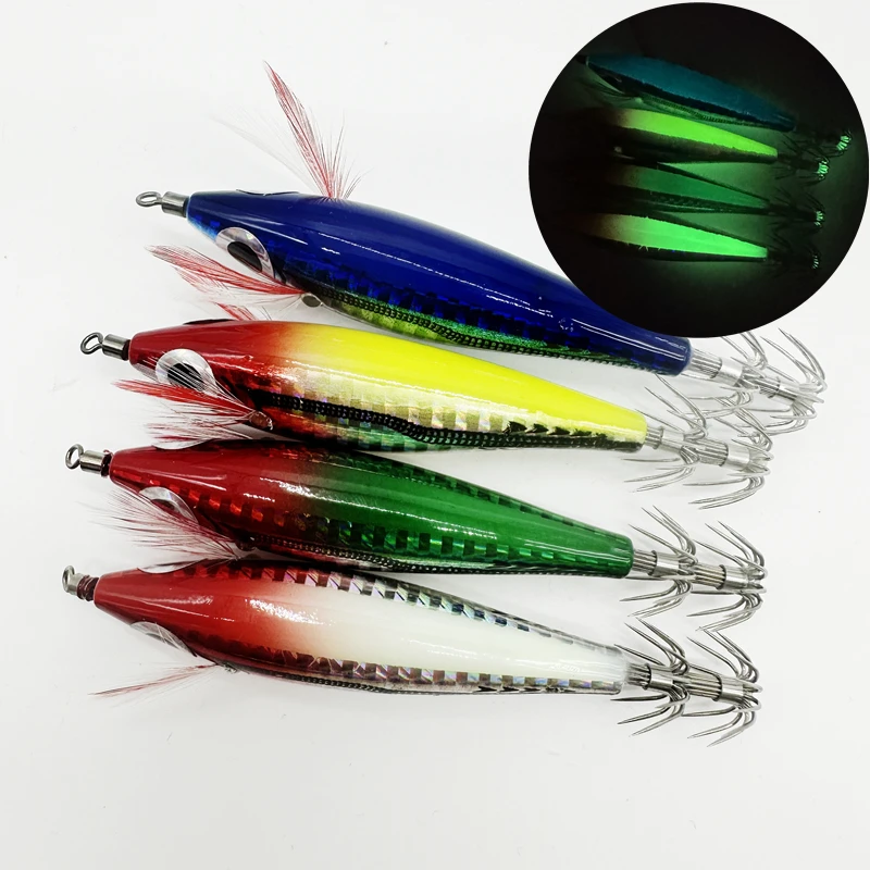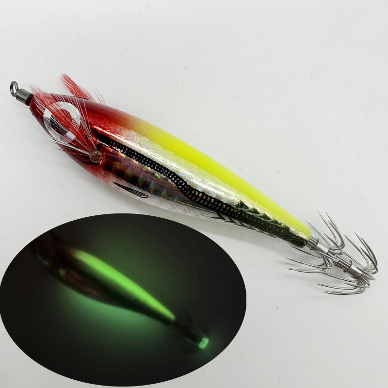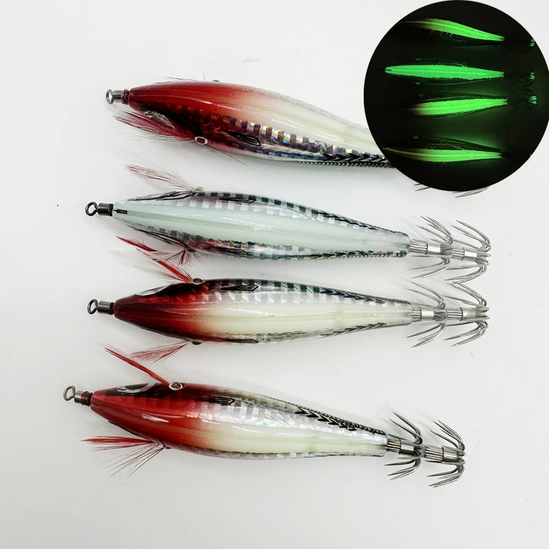 Señuelo luminoso flotante Horizontal de madera, anzuelo de calamar, Jigging, camarón, pulpo, sepia, cebos de pesca de mar
