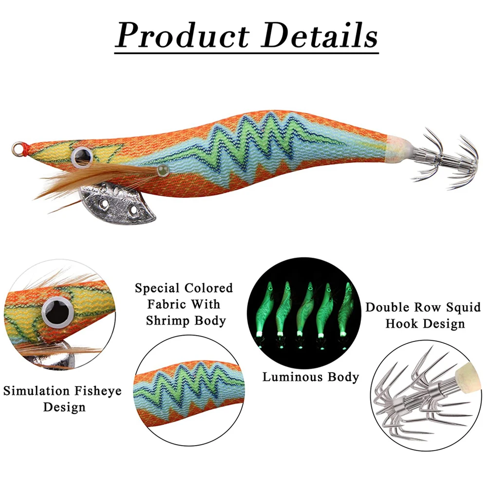 1. CUERPO LUMINOSO-Plantilla de calamar efecto luminoso de cuerpo completo mejor que otras luces de calamar y más fácil de atraer peces en la oscuridad.