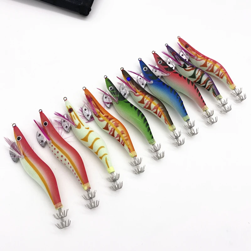 Señuelo luminoso de madera para pesca, anzuelo de pulpo, paraguas de sepia, calamar, jigging, 10 unidades, 4g/12cm