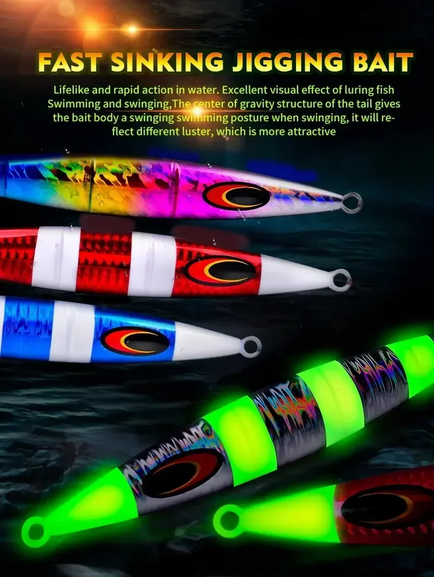 Señuelo luminoso de Metal de alta calidad para pesca en barco, señuelo de pesca de sardina, anzuelo largo de Metal fundido, 1 piezas