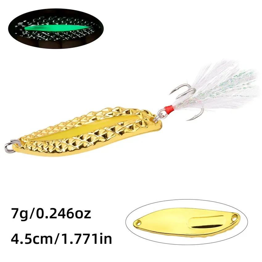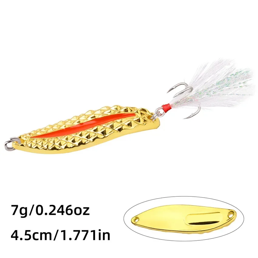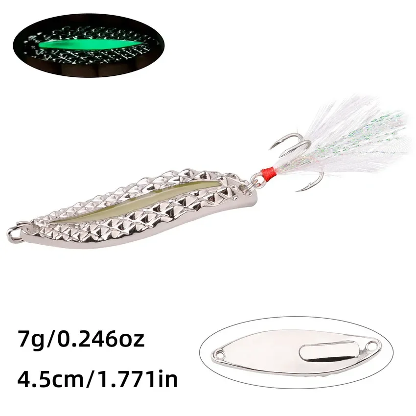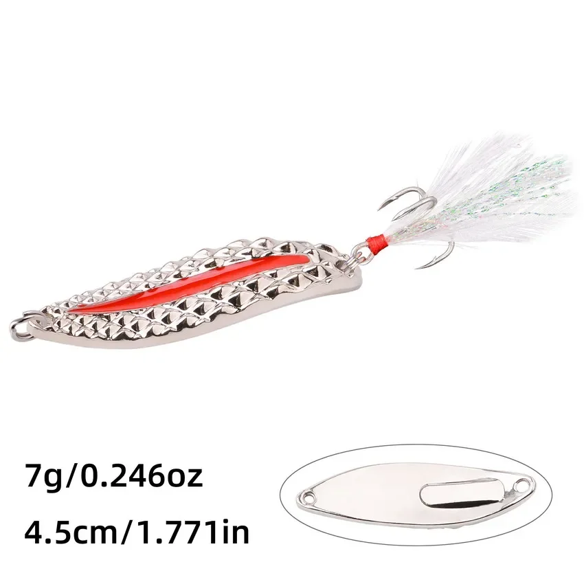El cuerpo de aleación de cebo es un diseño de pozo ovalado, las perturbaciones de flujo pueden crear eficazmente diferentes fluctuaciones de frecuencia, estimulan a los peces a sentir que a conocer la distancia.