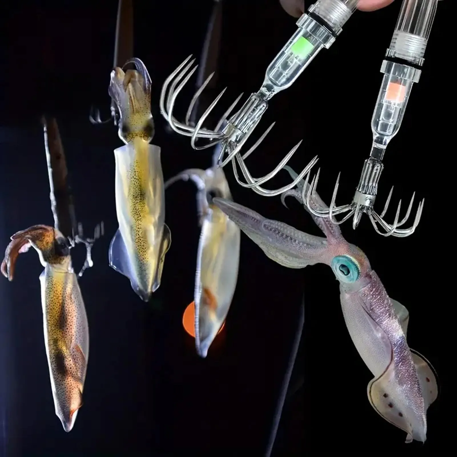 Anzuelos de calamar luminosos: estos anzuelos emiten un brillo vibrante que atrae a los calamares y mejora sus posibilidades de una captura exitosa.