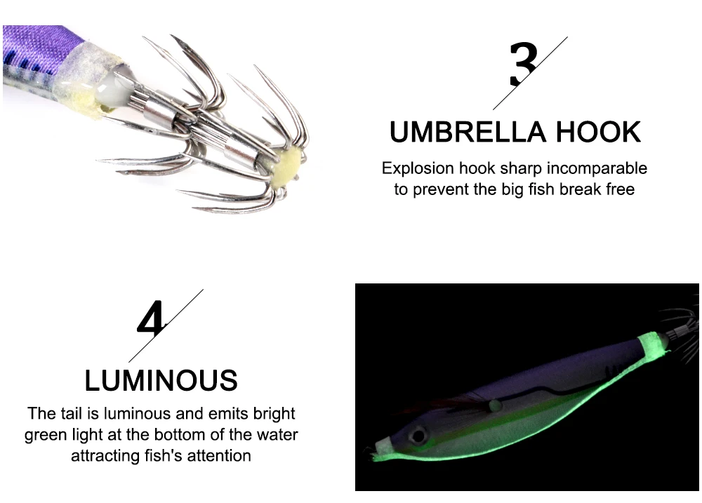 Señuelo luminoso de pesca, anzuelo de calamar Wobblers, anzuelos duros de madera de Camarón, pulpo de mar, ojos 3D, 8cm, 10g