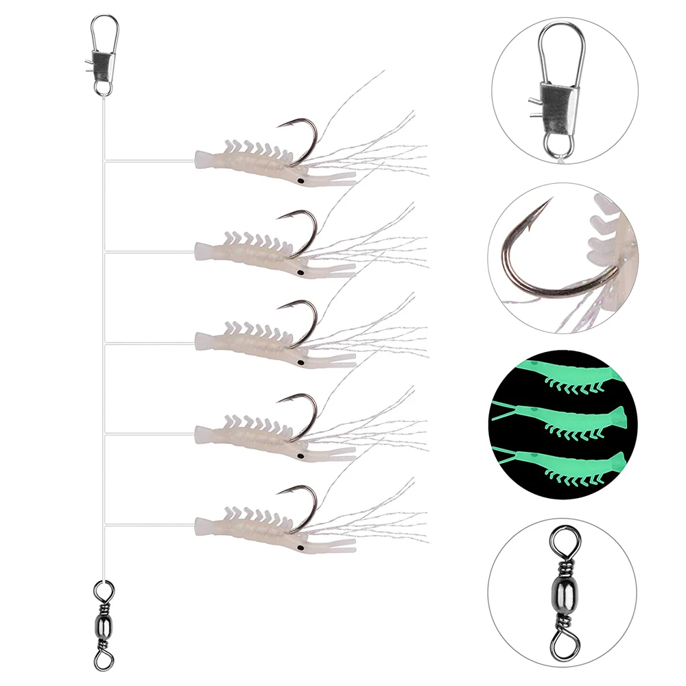 Señuelos Luminosos para Pesca de Camarones, Aparejos de Señuelo, Anzuelo Luminoso para Trucha, Lubina, Agua Salada, Agua Dulce, Aparejo de Aparejo, 30 Bolsas/15 Bolsas