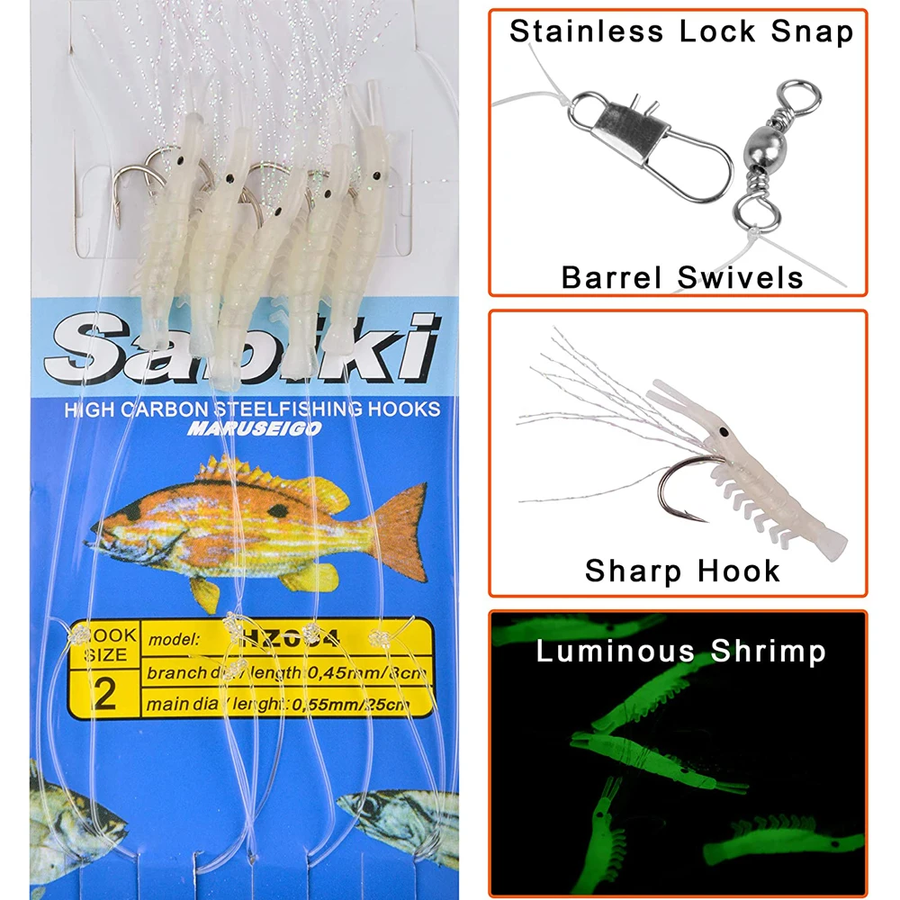 Señuelo sabiki de camarón suave luminoso, es más atractivo para los peces