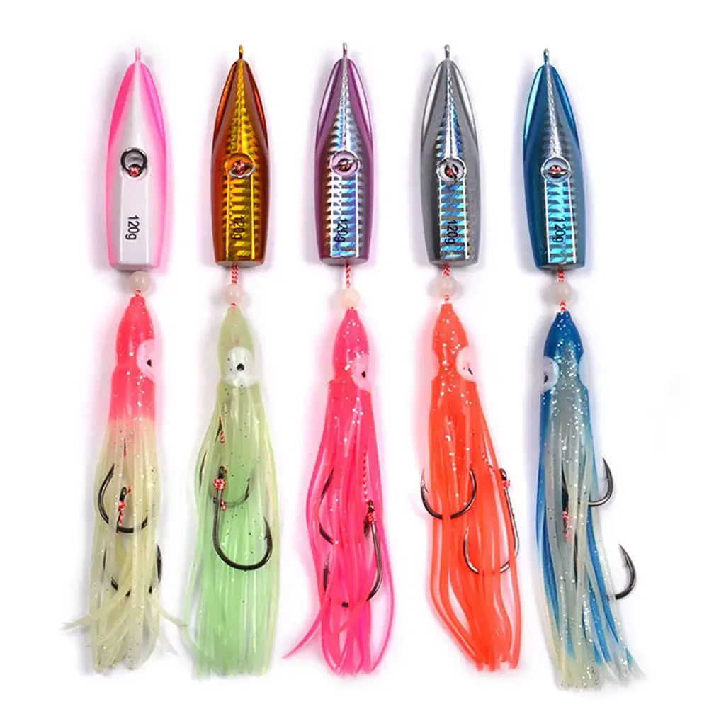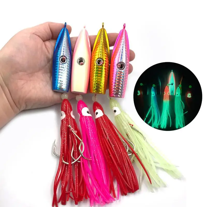 Señuelo luminoso de pesca de 80g-200g Señuelos de Pesca de Metal con anzuelos de calamar Bkk cebo duro Marlin