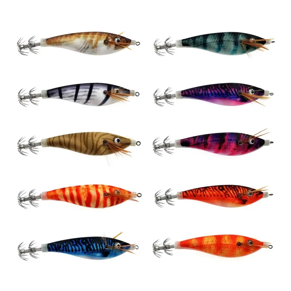 Señuelo luminoso para pesca en el mar, cebo de 10 piezas, gambas, Jigging, pulpo, sepia