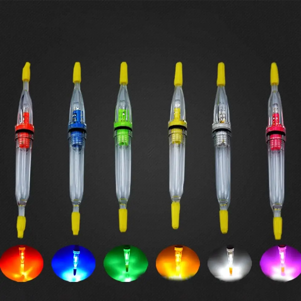 Especificaciones: Color de la luz: verde, rojo, blanco, azul, amarillo, rosa, Multicolor Material: plástico Color: como se muestra Longitud: 83mm Paquete: bolsa de PE Batería: CR435 (no incluida) Características: -Pantalla LED de alto brillo. -Posicionamiento visual preciso. -Bajo consumo de energía y largo tiempo de emisión de luz. -Una gran herramienta para atraer peces en aguas libres o en el océano. Cuélgalo en su red de pesca o cebo para atraer eficazmente peces, camarones y cangrejos y agregar más diversión a su tiempo de pesca. Cómo usar: 1. Pasa el sedal a través del orificio colgante de la lámpara de cebo LED y las almohadillas de silicona en ambos extremos, Y fíjelo de 10 a 30 cm de distancia del gancho para lograr el efecto de atraer al pez. 2. Coloque el cebo falso en el cebo para atraer peces. El paquete incluye: 2 piezas Señuelos de Pesca Nota: Debido a las diferentes pantallas y efectos de iluminación, el color real del artículo puede ser ligeramente diferente al color que se muestra en la imagen. Gracias. Puede haber una desviación de 1-2cm debido a la medición manual.