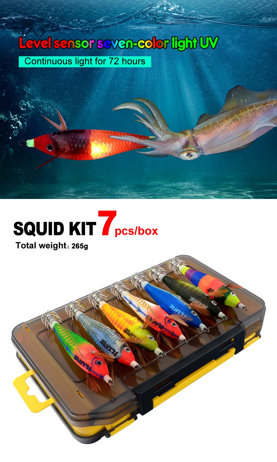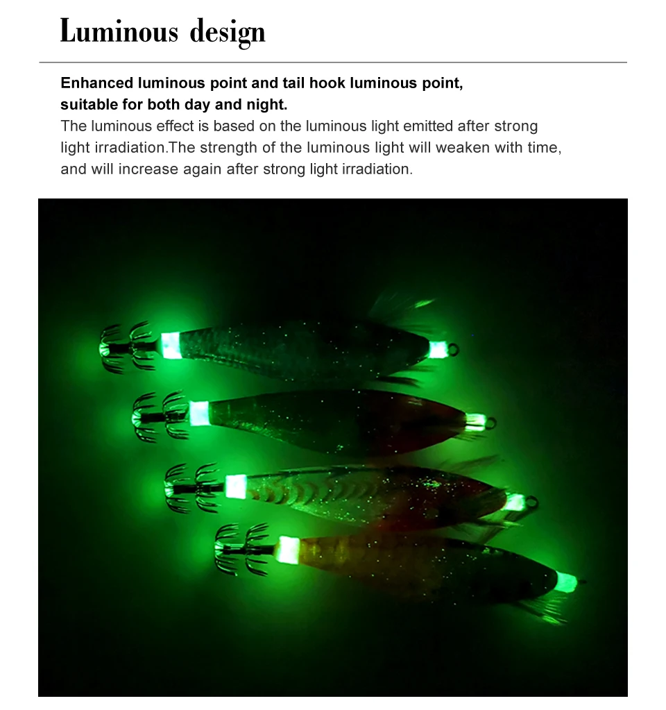 3. Fácil de llevar: el anzuelo de pesca de calamar es ligero y fácil de llevar para la pesca al aire libre.