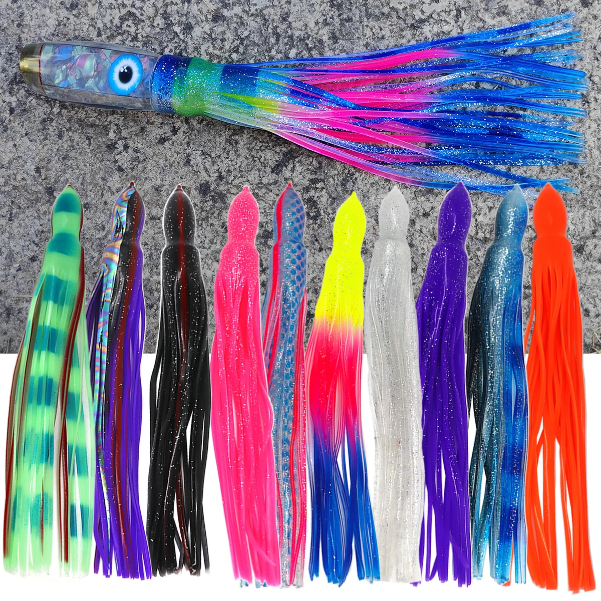 Señuelo Marlin de 9", faldas de calamar, cebo de goma, gran juego, pesca, señuelo de pesca, rebote, faldas de pulpo de repuesto para pesca