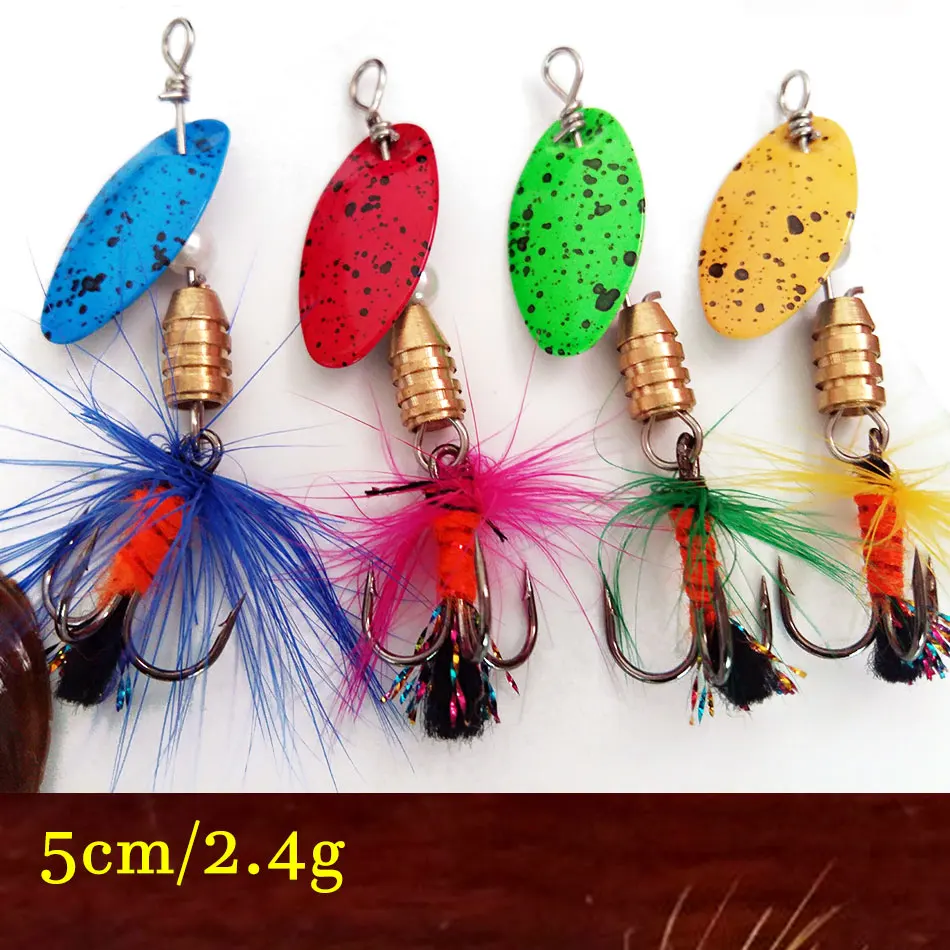 4 unids/caja 2,4g 5cm señuelo de metal cuchara SPINNER cebo aparejos de pesca para percha en agua dulce y agua salada con anzuelos triples VMC