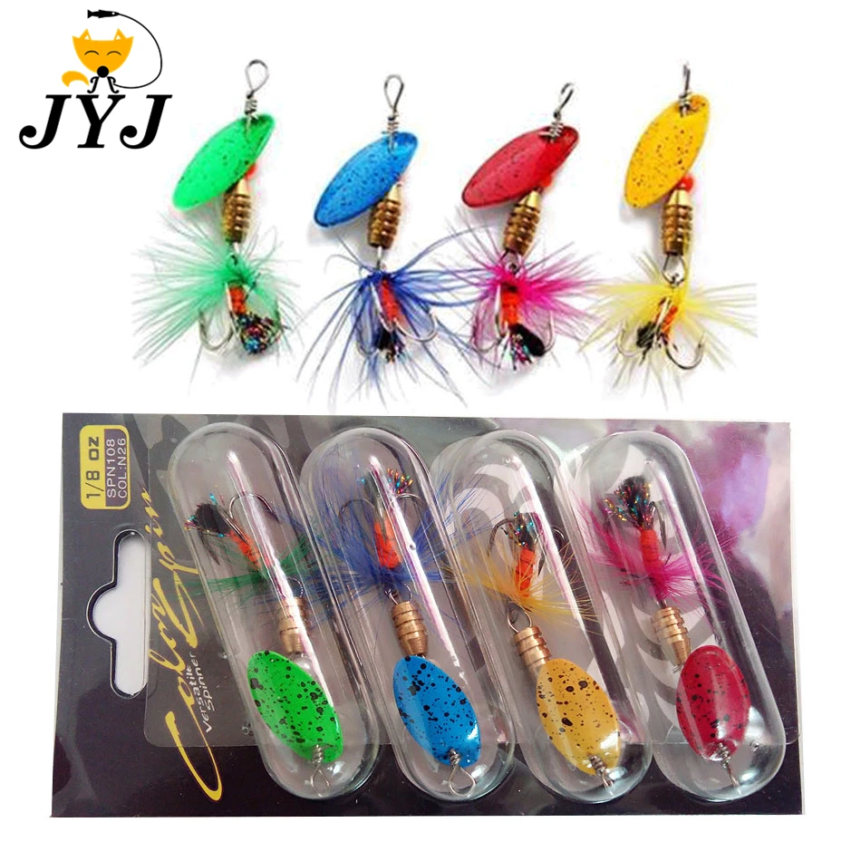 4 unids/caja 2,4g 5cm señuelo de metal cuchara SPINNER cebo aparejos de pesca para percha en agua dulce y agua salada con anzuelos triples VMC
