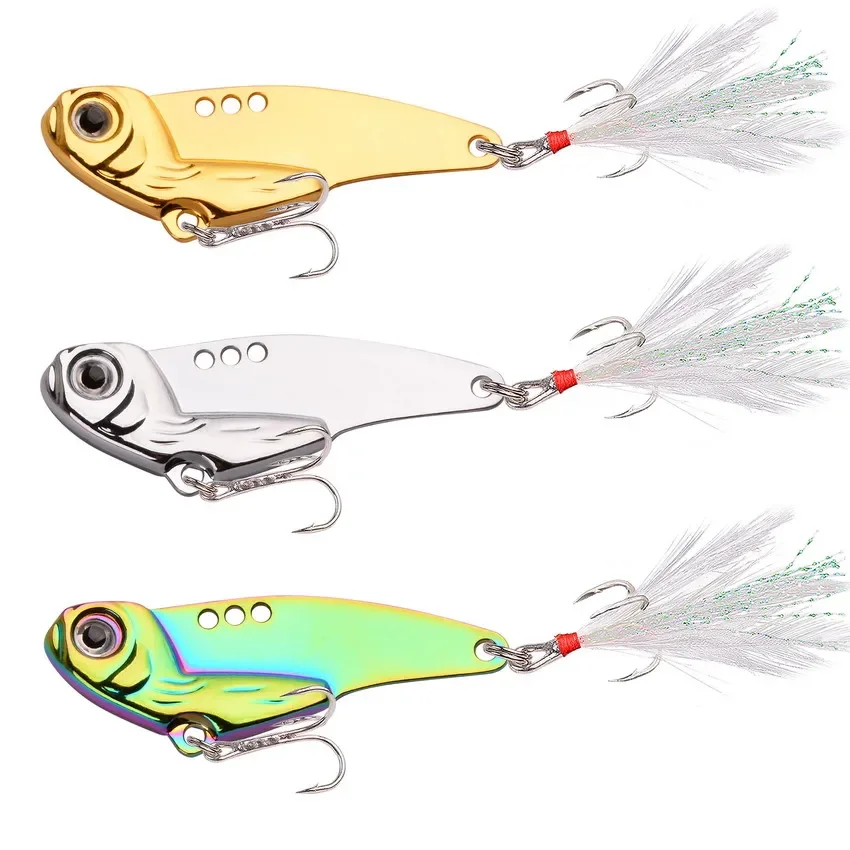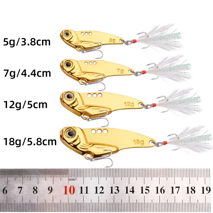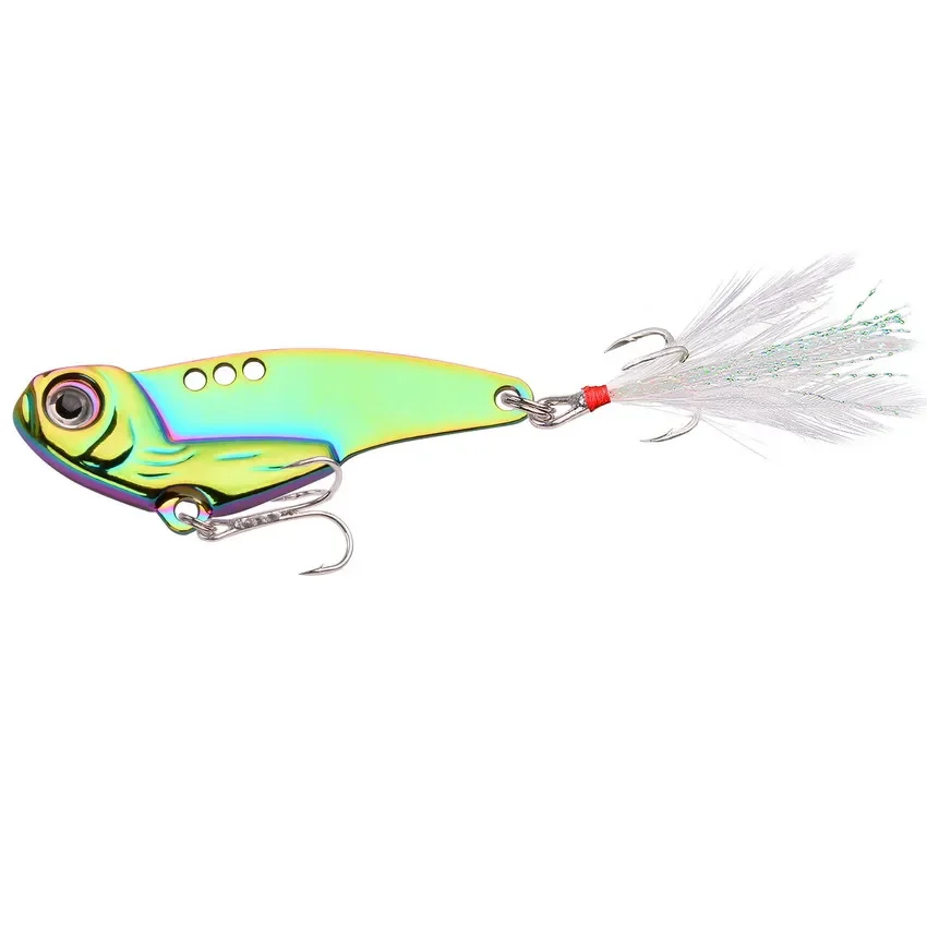 Señuelo de Metal con forma de hoja VIB, cebo duro de 5g, 7g, 12g, 18g, ojos 3D, lápiz, cuchara, Spinner, balanceador, Swimbait, aparejos de pesca, 1 unidad