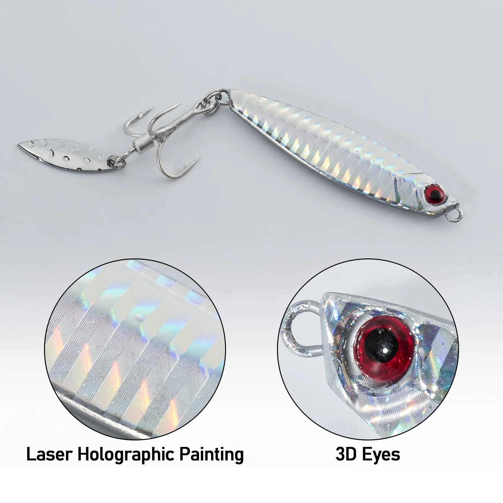 1. Diseño DE PINTURA: Estas plantillas de metal están pintadas con láser holográfico, con ojos 3D, colores brillantes y revestimiento reflectante, junto con su acción de natación realista única, proporcionando una presentación única que le ayudará a obtener más picaduras.