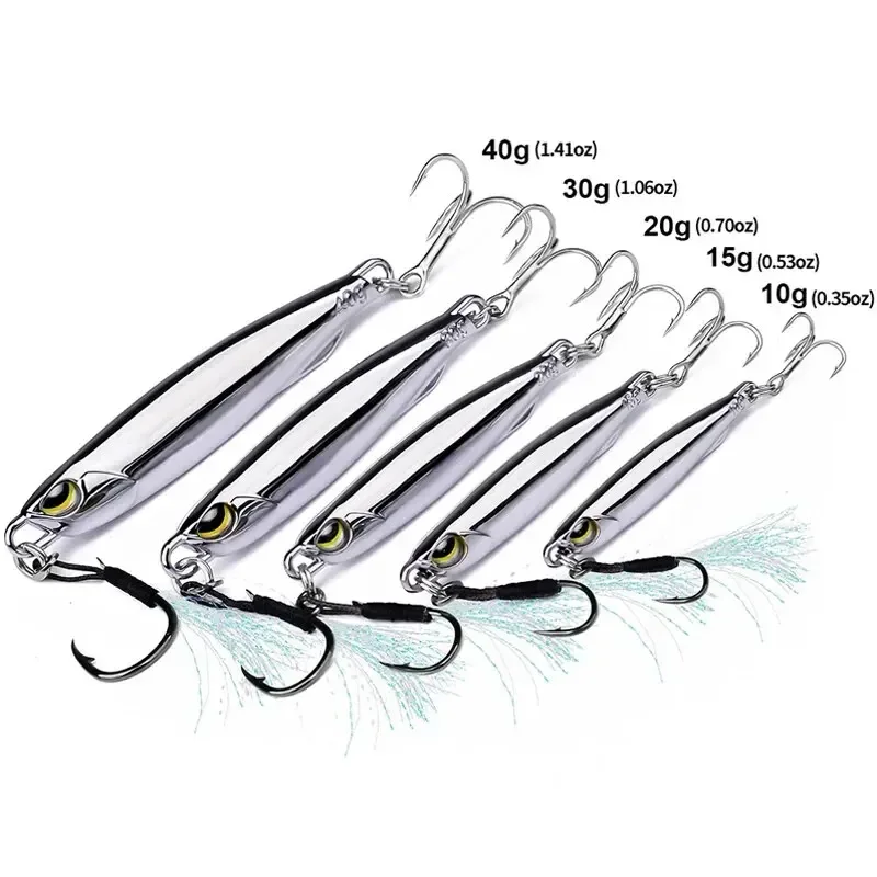 Juego de Señuelos de Metal Fundido para Pesca de Lubina, Cebo Artificial con Gancho, Cuchara de Plantilla, 15g, 20G, 30g, 40g, 1 piezas