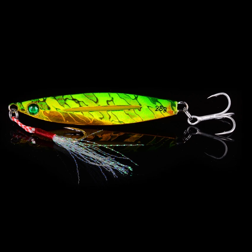 Especificaciones:Tipo: señuelo de pesca jiggingPeso: 7g,10g,14g,17g,21g,28G, 40gLongitud: 5cm, 5,5 cm,6cm, 6,5 cm,7cm, 7,5 cm, 8,5 cmProfundidad de buceo: hundimientoColores: 10 colores diferentesLista de embalaje