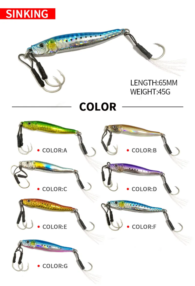 Plantilla de Metal para Pescar, Cebo de Pesca de Agua de Mar, Lubina, Trucha, Señuelo Artificial Isca, Jig de 65mm, 45g, 9171