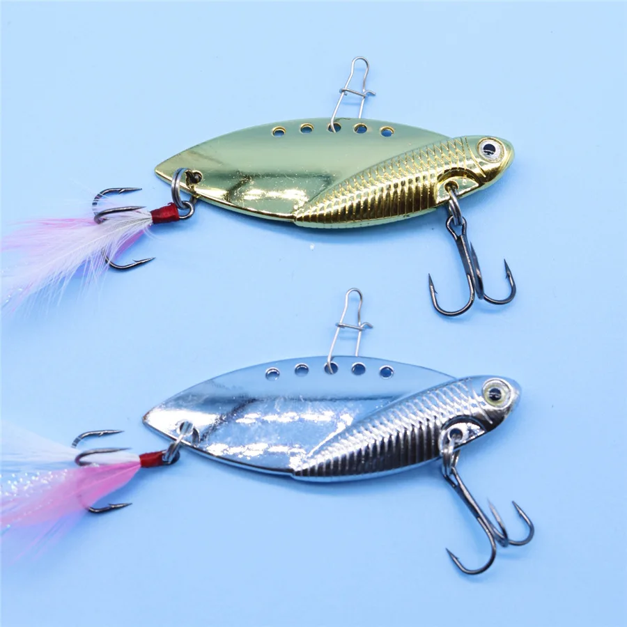 Señuelo de Metal con lentejuelas para pesca, cebo Artificial de 10g, anzuelo triple de pluma, 1 unidad